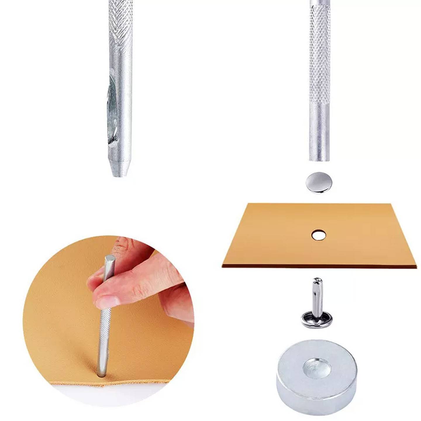 This leather rivet tool kit includes 120 pieces of rivets in 8mm and 6mm sizes in both Silver and Antique finishes, great for joining or decorating your leathercraft
