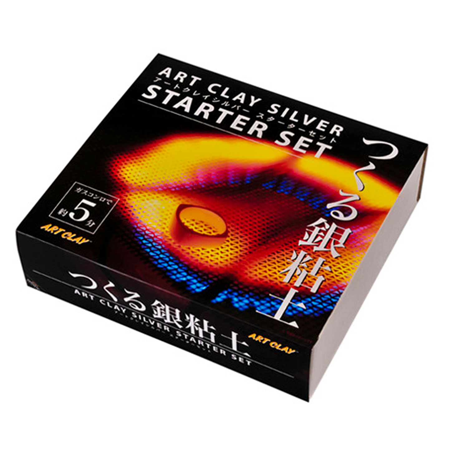 Comes with wire mesh stove top kiln, ring measurer, wire brush, tweezers, stylus, file, 3m abrasive pads, polishing cloth, liver of sulphur, and a pack of 10g Art Clay Silver.