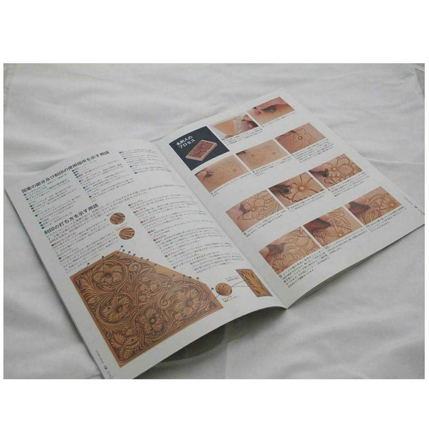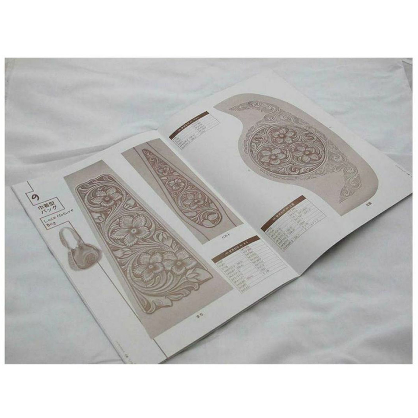 You're looking at a Brand new copy of a book on leather carving and leather bag construction in colour and sepia with full size pull outs. Printed in colour with hundreds of high quality colour photographs, clearly detailing every step, the projects and techniques in this book can easily be mastered by a non-Japanese speaker. This book is primarily for the life-size carving patterns depicted in the pictures.