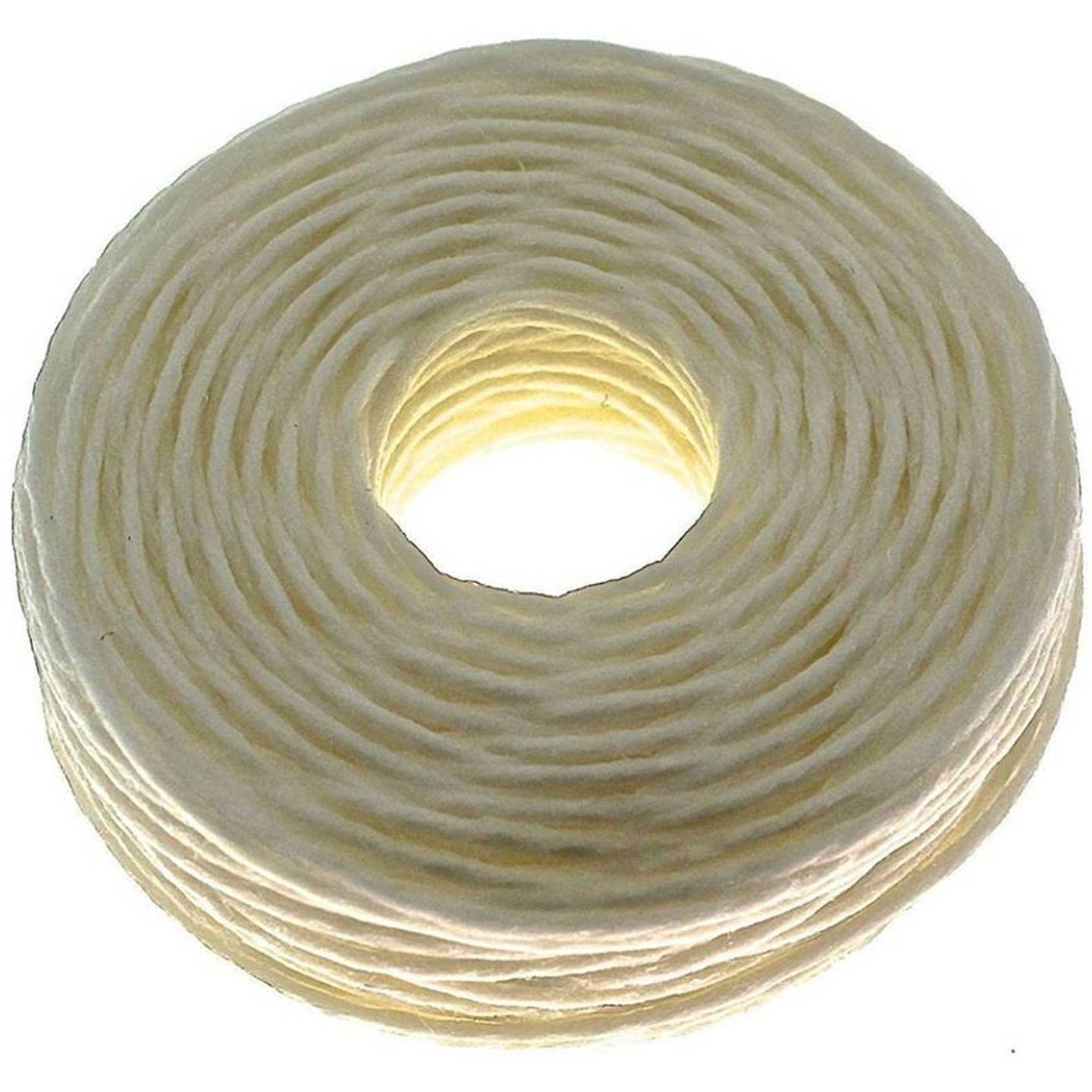 This non-stretchable thread measures 0.8mm (0.03 inches) when uncompressed and has been braided in the same way linen thread has, providing smooth and consistent stitching. Comes in a variety of colours, including black, white and dark brown.