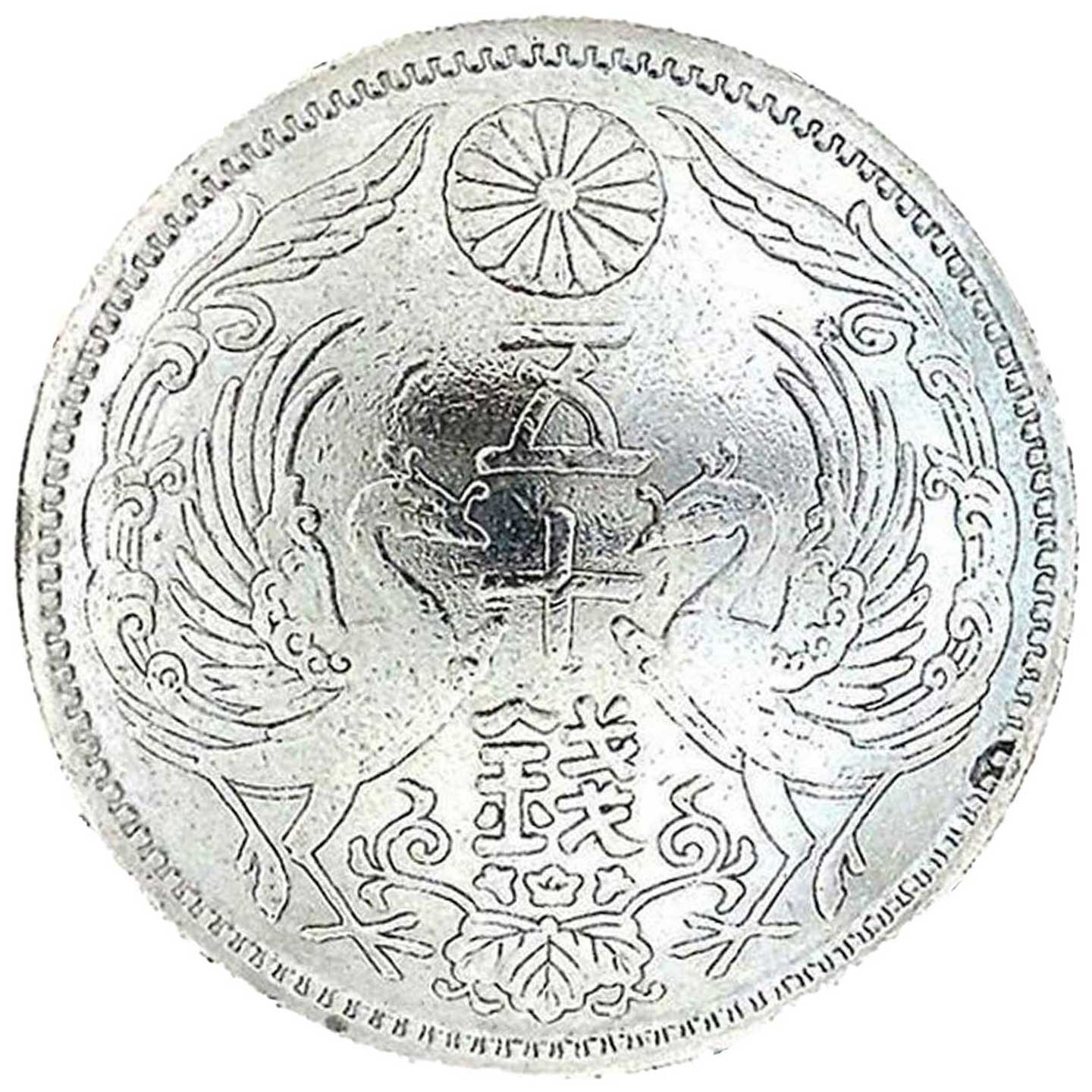 Craft Sha Leathercraft 24mm Round Antique Japanese Phoenix Silver Coin Heads 50 Sen Leather Concho, with Screw & Back Mount, for Leatherwork
