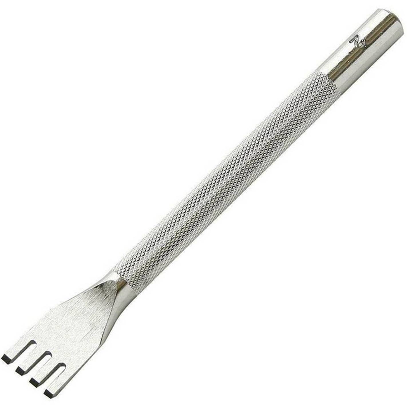 Each prong measures 2mm (0.08) in width, ensuring evenly spaced and sized lacing holes every time. This high-quality tool is used to punch holes in a precise shape that is optimal for lacing leather. Use this 4-prong thonging chisel for punching multiple holes at once in a straight line such as on the edges of your leather.