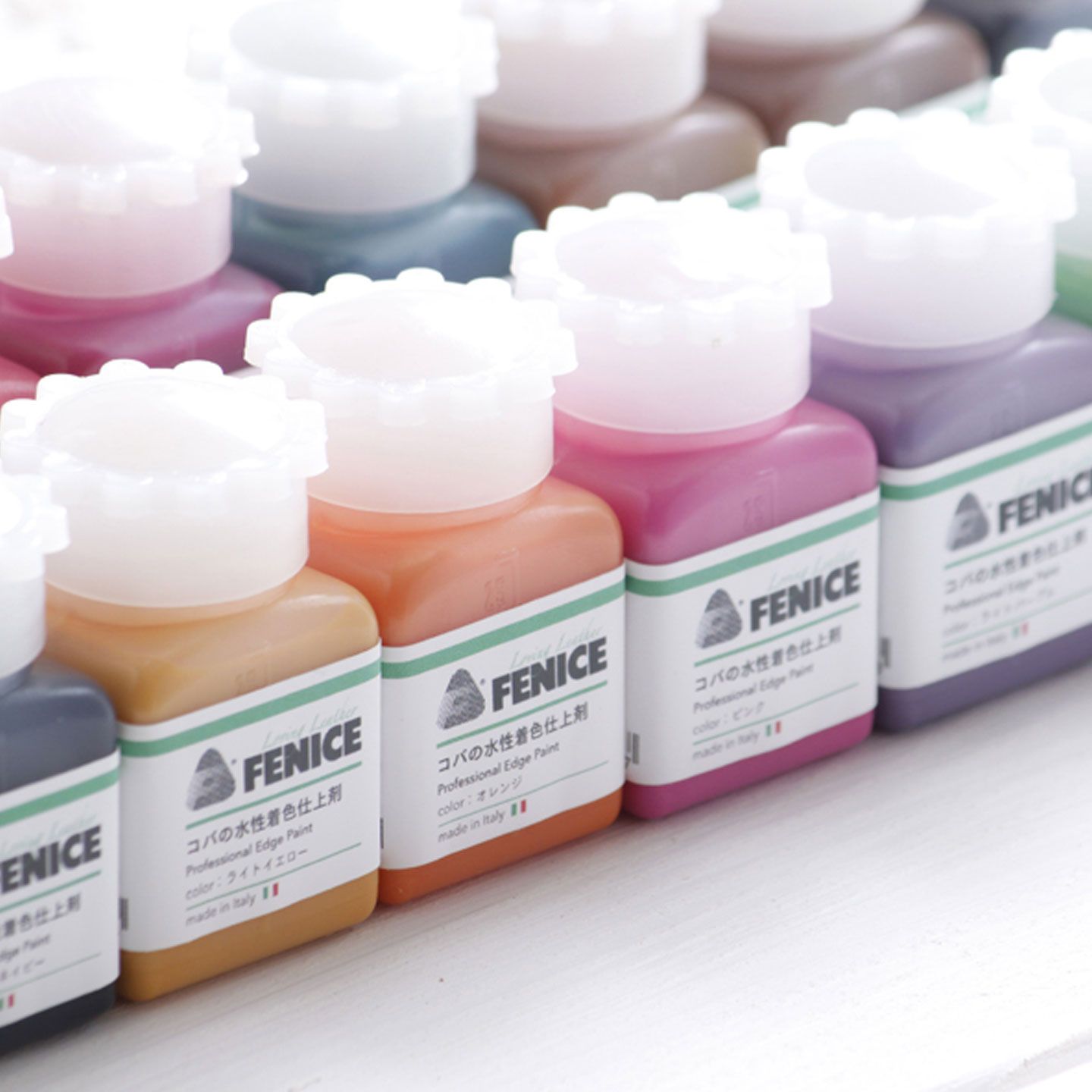 You can achieve a thick and smooth edge by first applying Fenice clear neutral and then adding edge paint of your choice to top it off. This product is simple to use and increases the number of colors you can generate. Collect all 20 Fenice edge paint variations to maximize your leather edge painting experience (each sold separately).