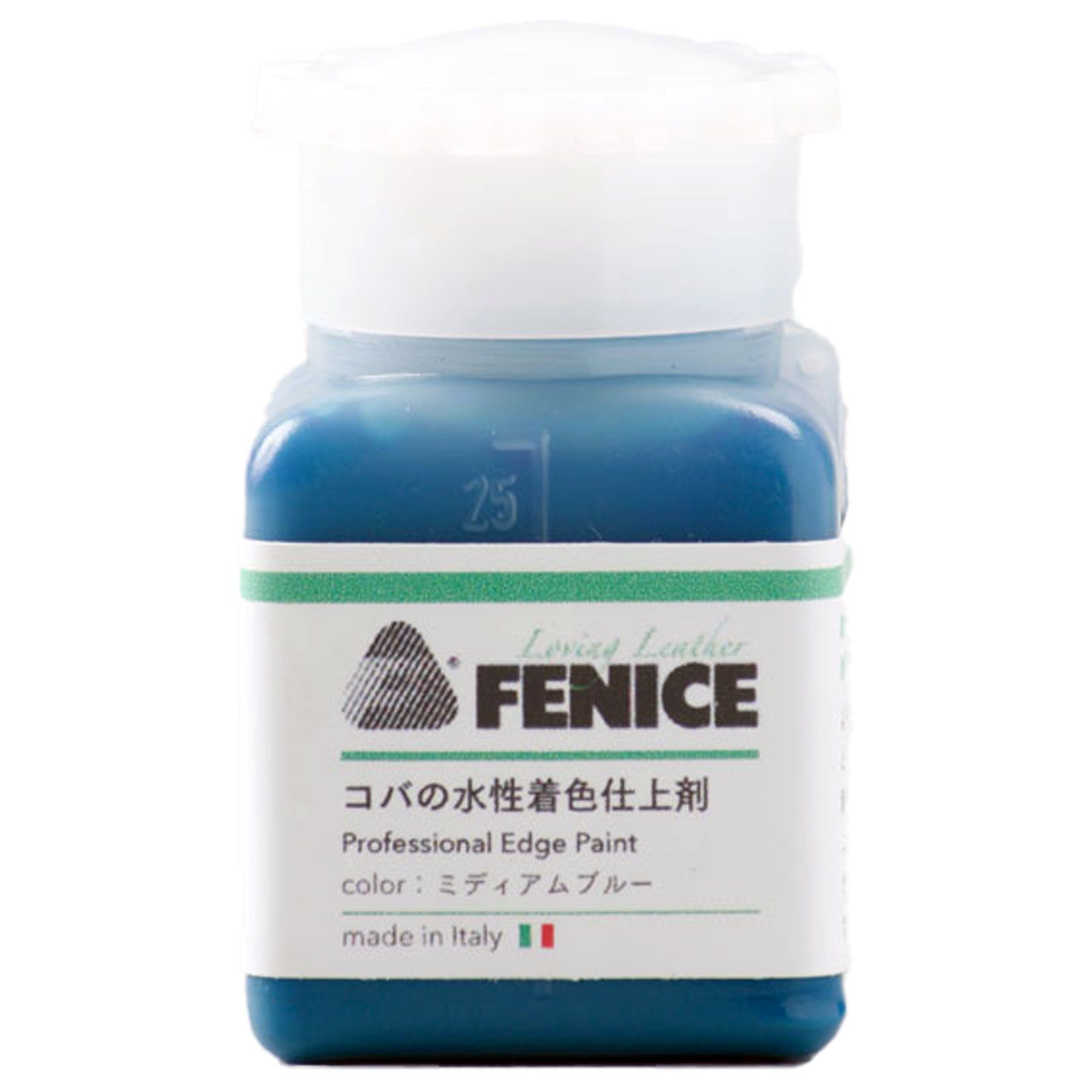 This listing is for the Fenice Medium Blue 25ml Professional Leather Edge Paint only. Photos showing other materials and products are for illustrative purposes only.