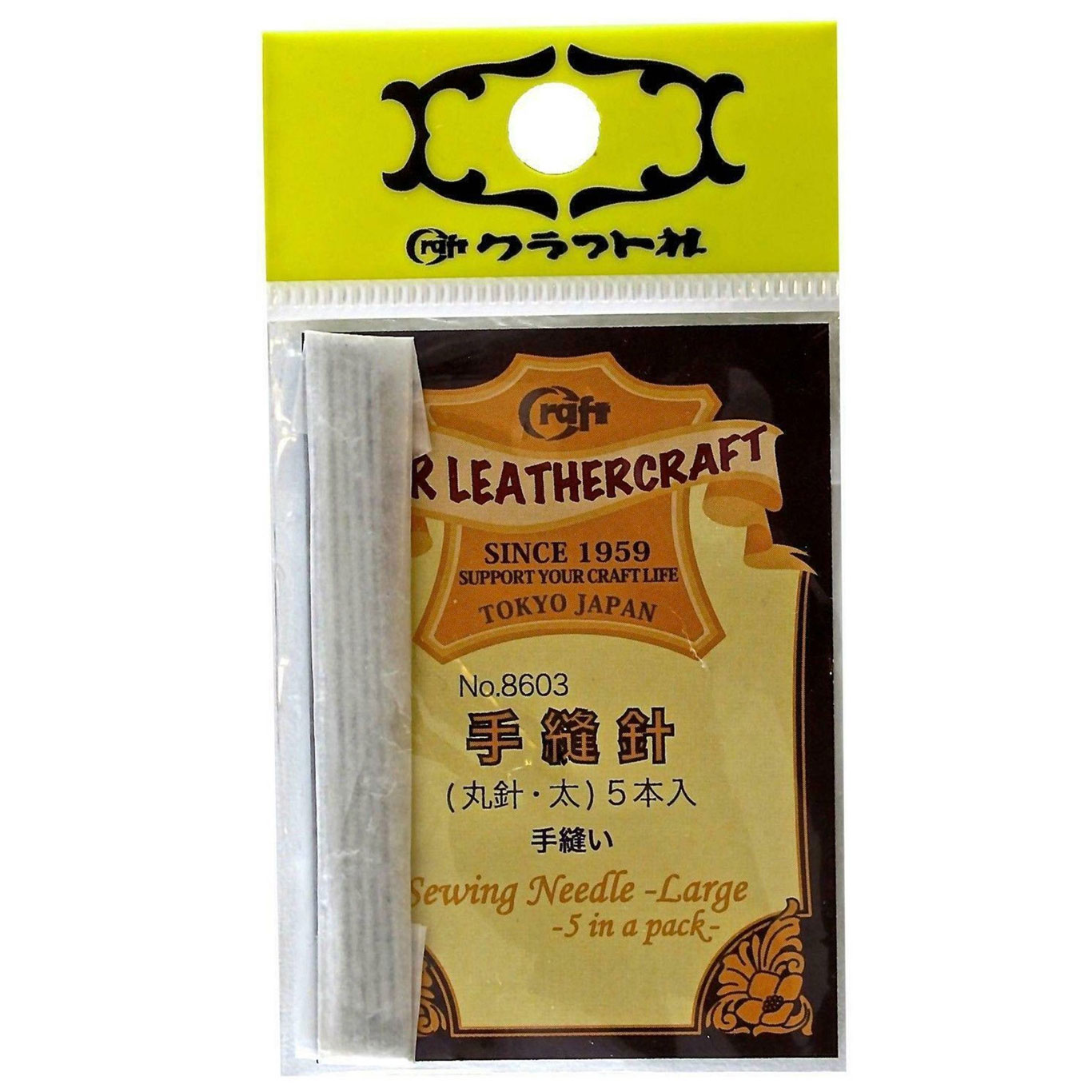 You're looking at a set of brand new heavy-duty stitching needles from Craft Sha that measure 6cm long. These needles are made from high-quality material and are an excellent addition to your leathercraft tools.