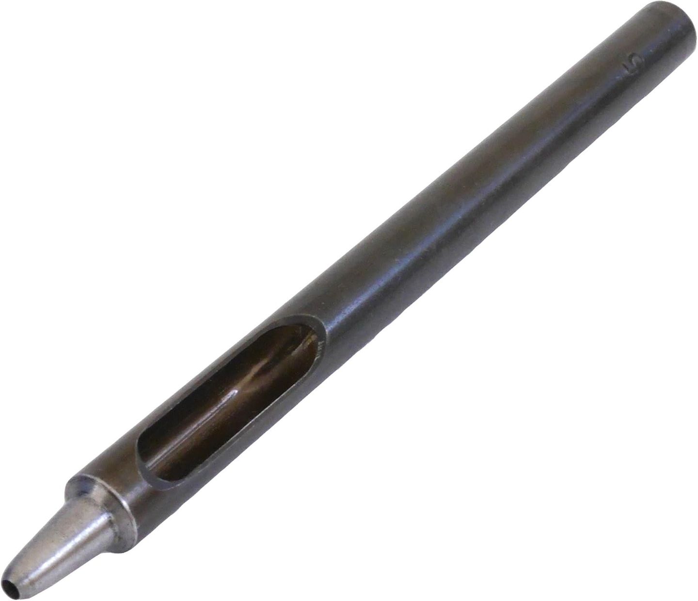 This Craft Sha Japanese round hole punch creates precise 1.5mm 1/16 inch holes in leather. Crafted from S45C steel and hand polished for sharpness, it delivers smooth, clean cuts for belts, straps, bags, and detailed leathercraft work.