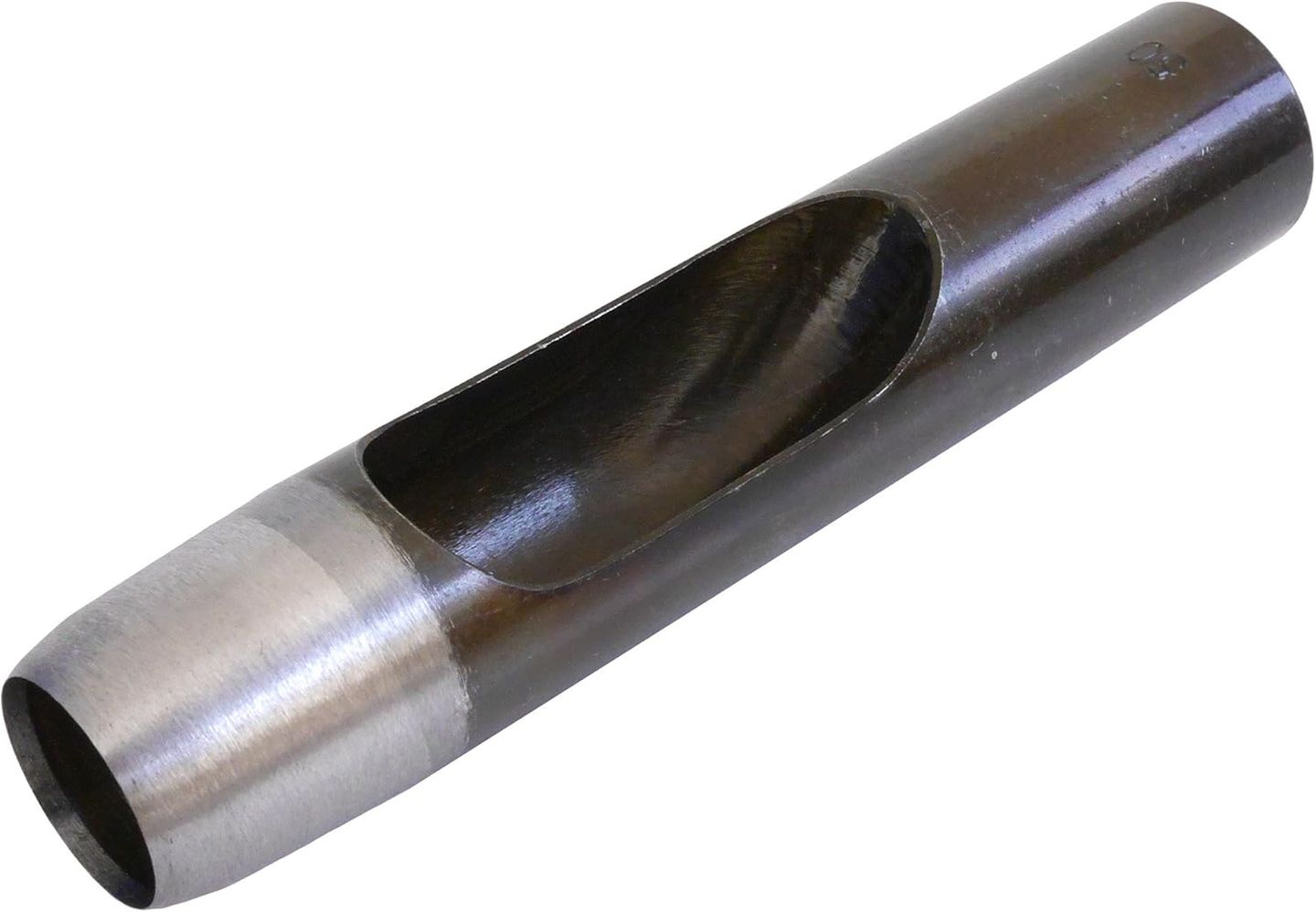 This Craft Sha 15mm 19/32 inch round hole punch is hand-forged in Japan from S45C steel. Its sharp polished edge cuts clean, smooth holes in belts, straps, bags, and other leather projects.