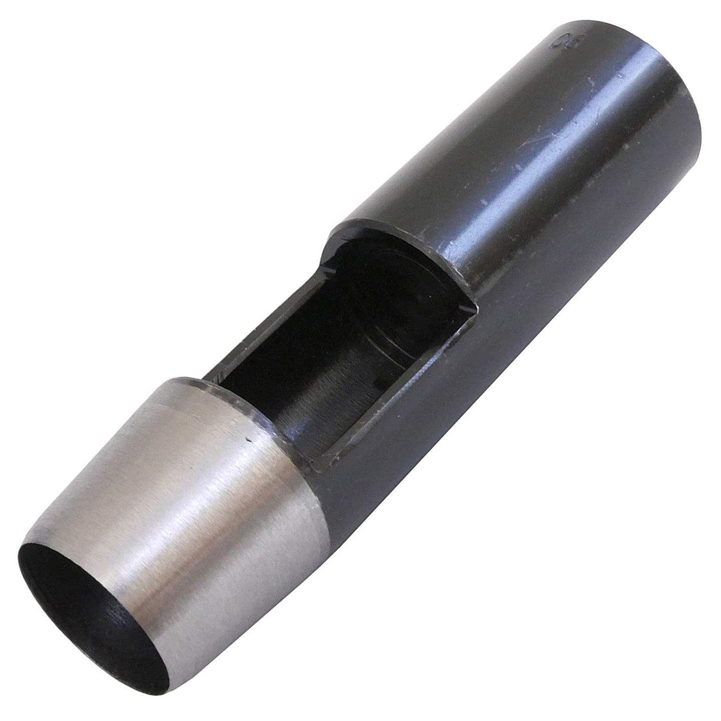 This Craft Sha Japanese round hole punch creates precise 27mm 1 1/16 inch holes in leather. Made from durable S45C steel, it delivers smooth clean cuts and is ideal for belts, straps, bags, and other leathercraft projects.