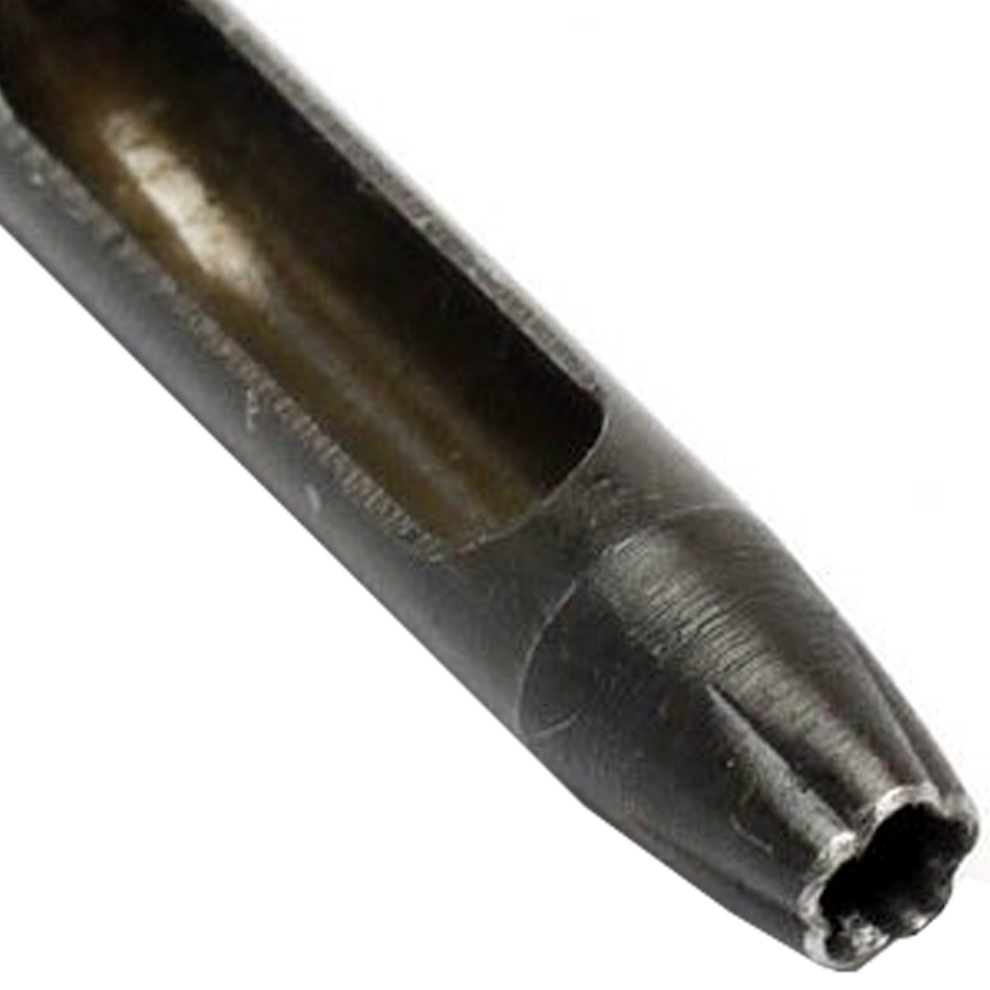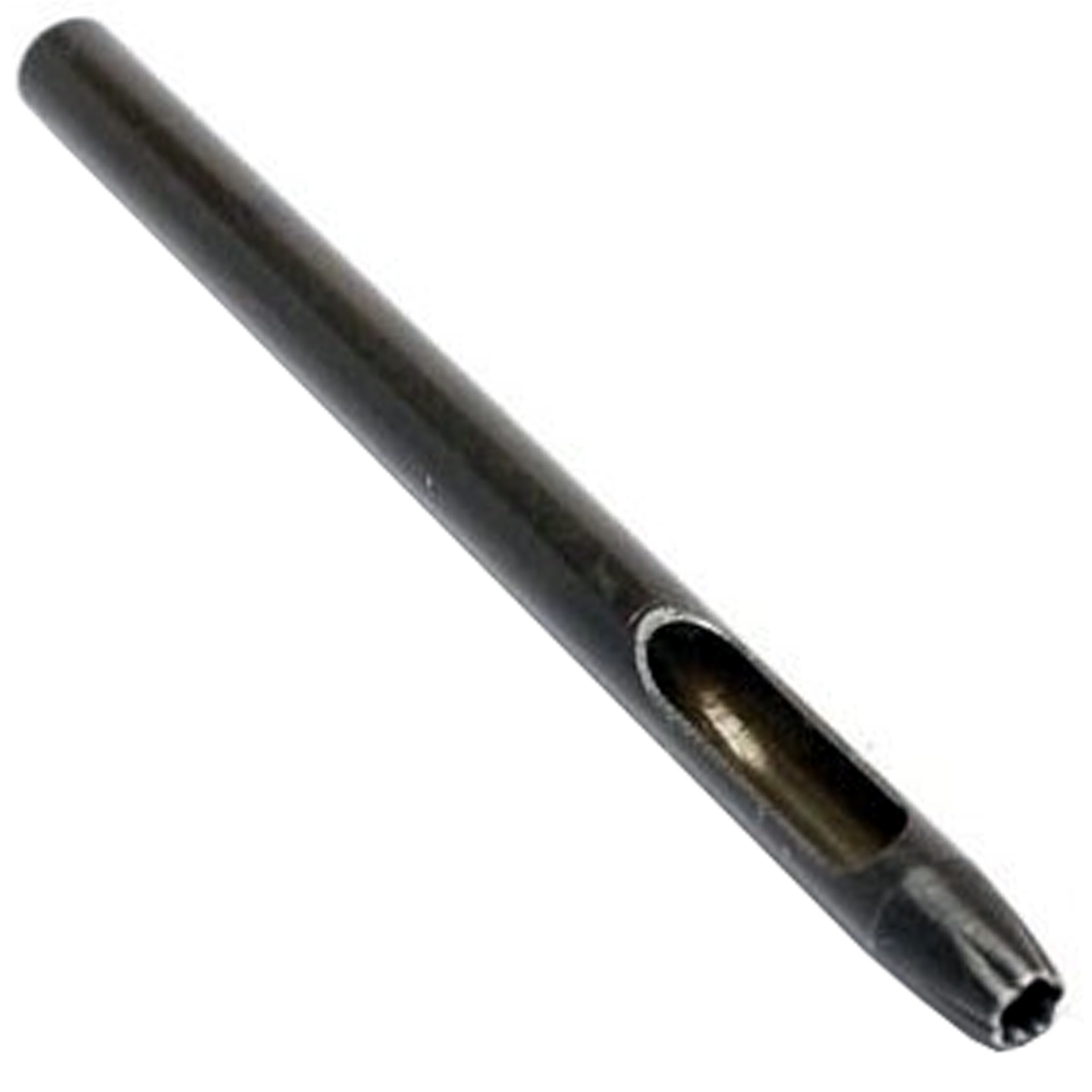 Place the cutting edge of the shaped hole punch on the leather to be punched and gently pound the top with a soft head hammer until a hole is punched. Pull this hole punch vertically when removing it from your leather to avoid damaging the cutting edge. If you believe you'll have problems removing your hole punch, wax the cutting edge before using it.