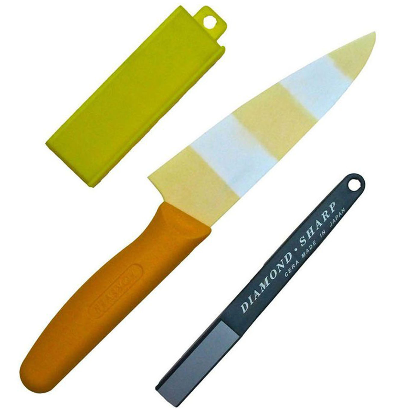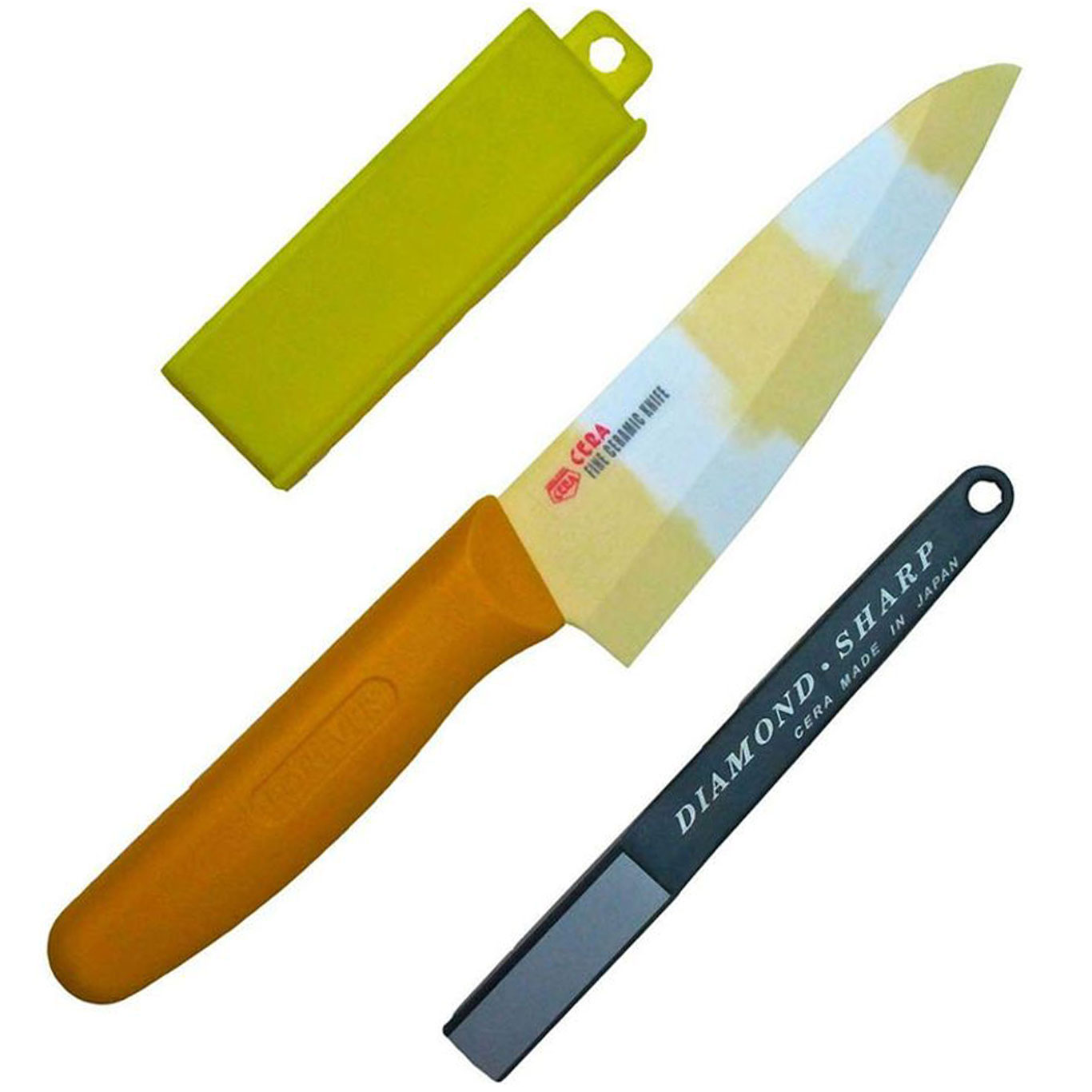 Forever Cera SC14YW Yellow Japanese Fine Ceramic General Purpose Kitchen Knife 14cm & Sharpener Set, for Fine Cutting & Slicing
