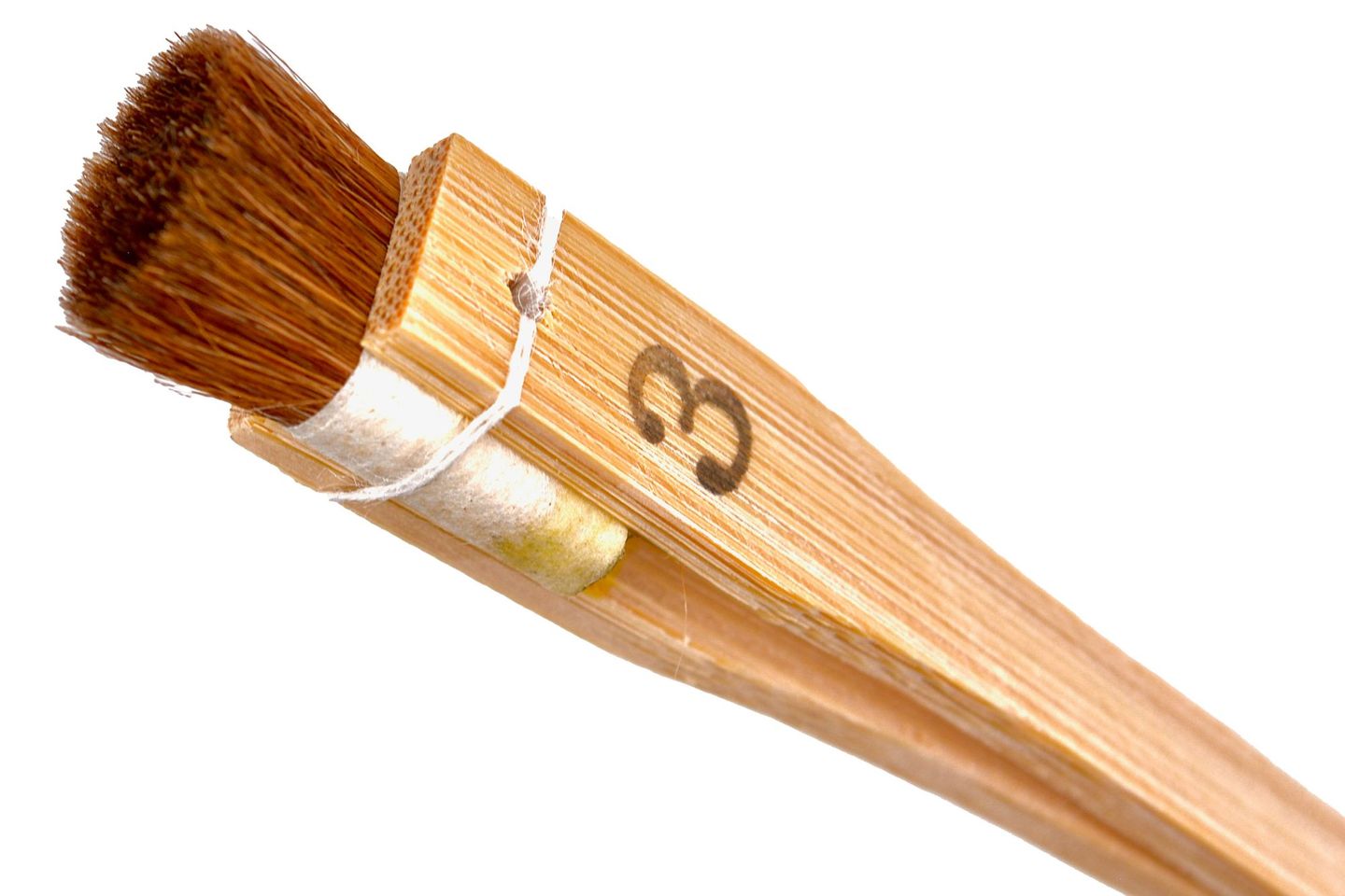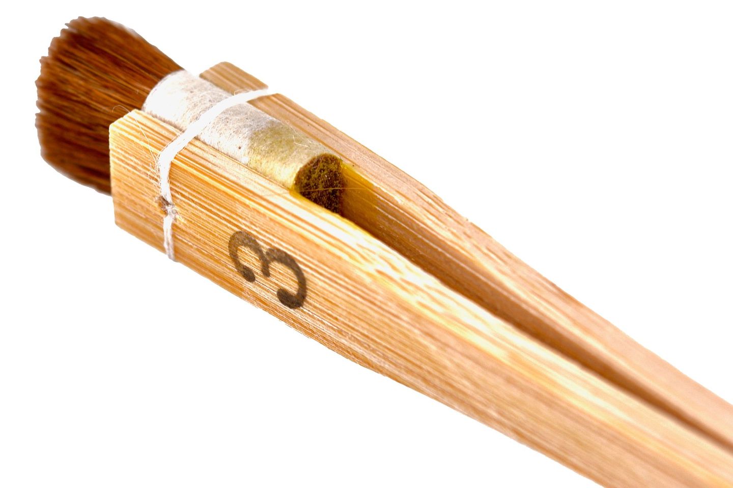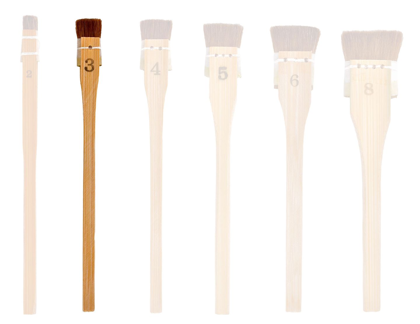 The Kyoshin Elle 12mm Surikomi Hake No.3 paint brush is great for painting, stenciling, fabric dyeing, and broad strokes in watercolours, sumi-e, and ceramics. Durable deer hair bristles ensure smooth, even coverage across large surfaces.