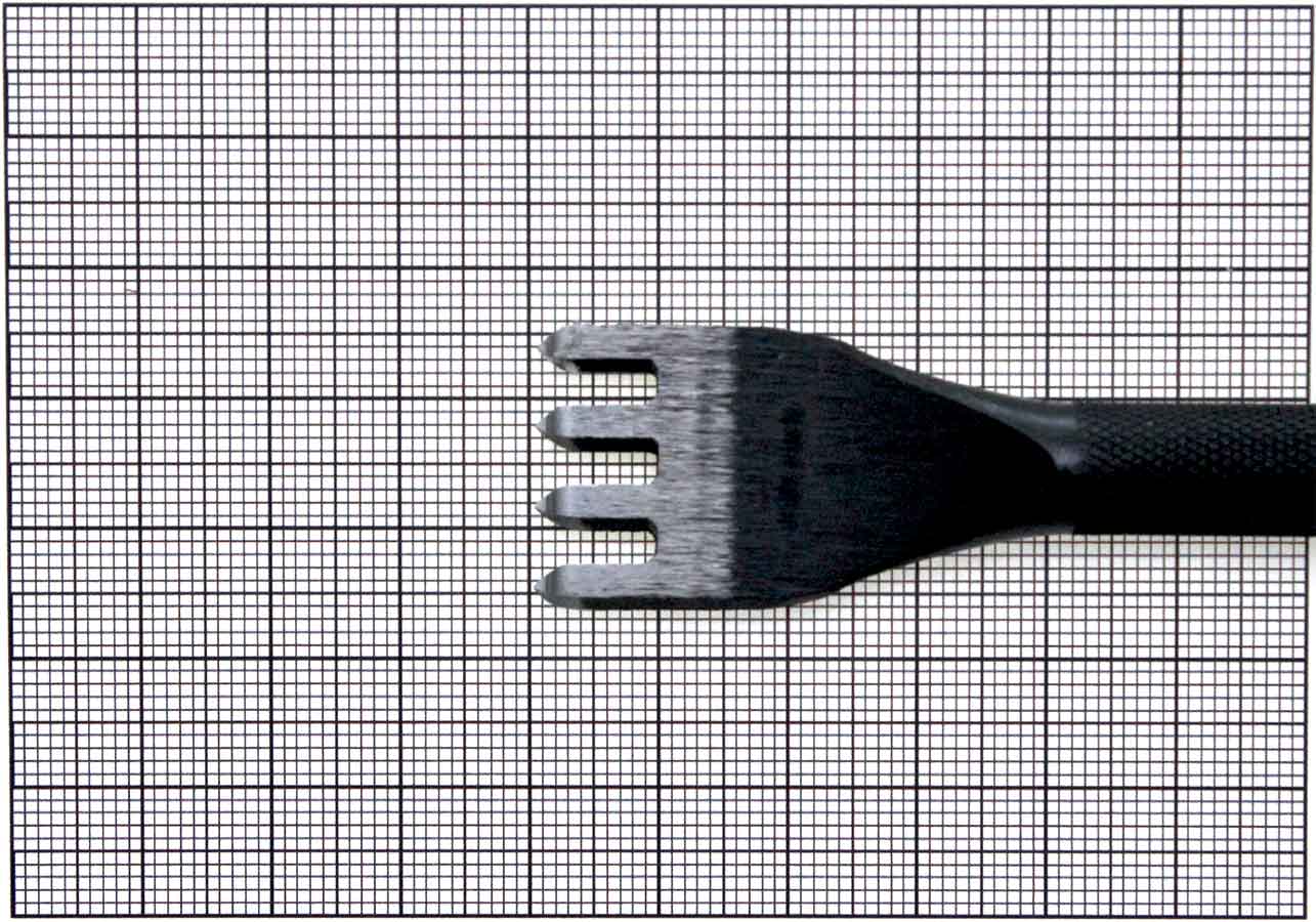 When punching holes or removing this tool from your leather, keep it perpendicular to the leather and use a soft-headed hammer instead of a metal hammer to avoid damaging the tool. The highly tempered prongs of this superb tool have a dual purpose: They are not only extremely strong and well-suited for penetration, but they also protect your leatherwork from uneven stitching by breaking rather than bending when damaged. This feature prevents the pricking iron from creating uneven stitch holes, which can occur with cheaper pricking irons due to a bent prong.