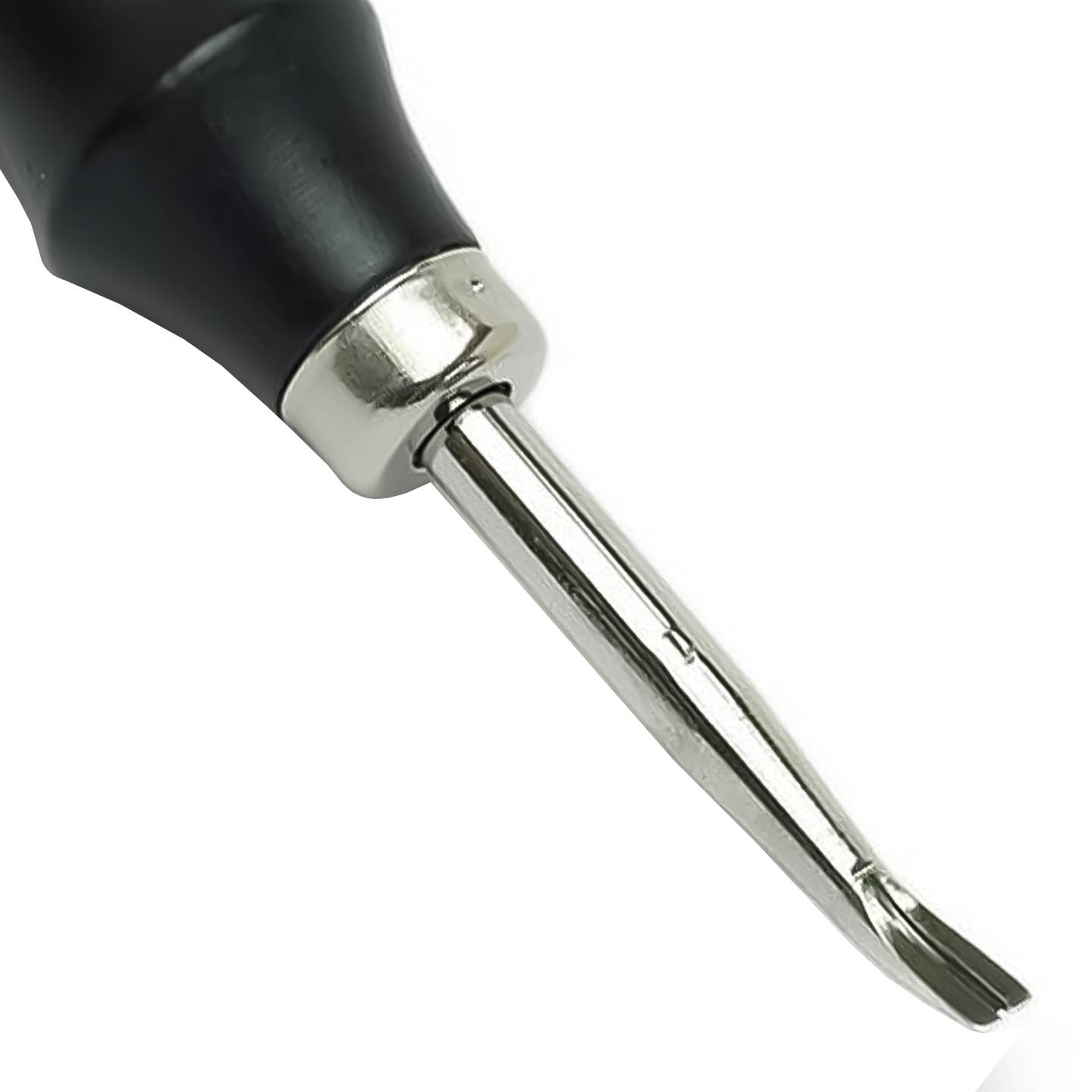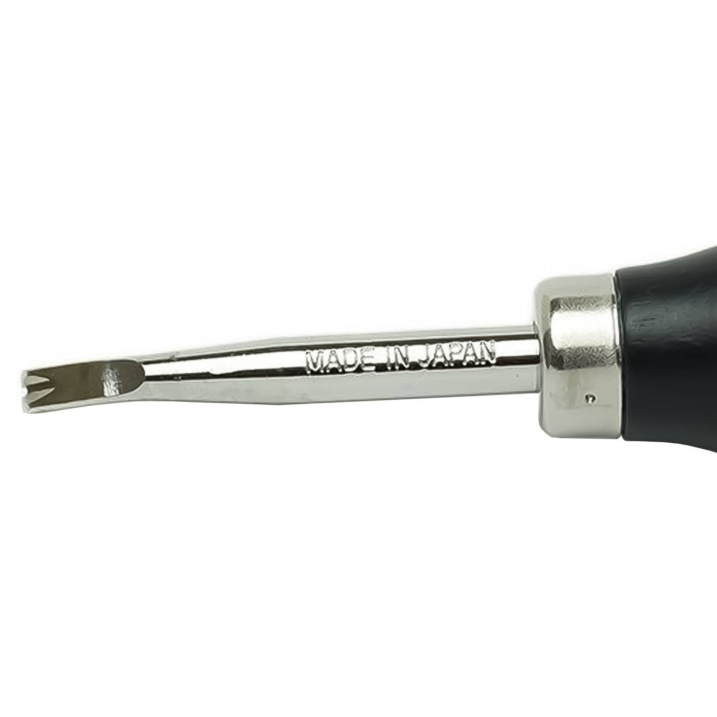 This high-quality edge beveler from Kyoshin Elle is truly for master leathercrafters. This tool's blade is forged from highly polished SKH51 steel, molybdenum-based high-speed steel in tungsten–molybdenum series. This exceptional, corrosion-proof, steel has a chemical composition that gives a great combination of well-balanced toughness, wear resistance, and hardness properties. Excellent for cutting tools such as twist drills, taps, milling cutters, saws, knives, etc., this steel is not easily found in other edgers. The smooth, ergonomic grip of this tool is in black, with a silver ferrule and the size stamped in the tang of the blade, allowing you to easily determine the correct size to use for your leatherwork.