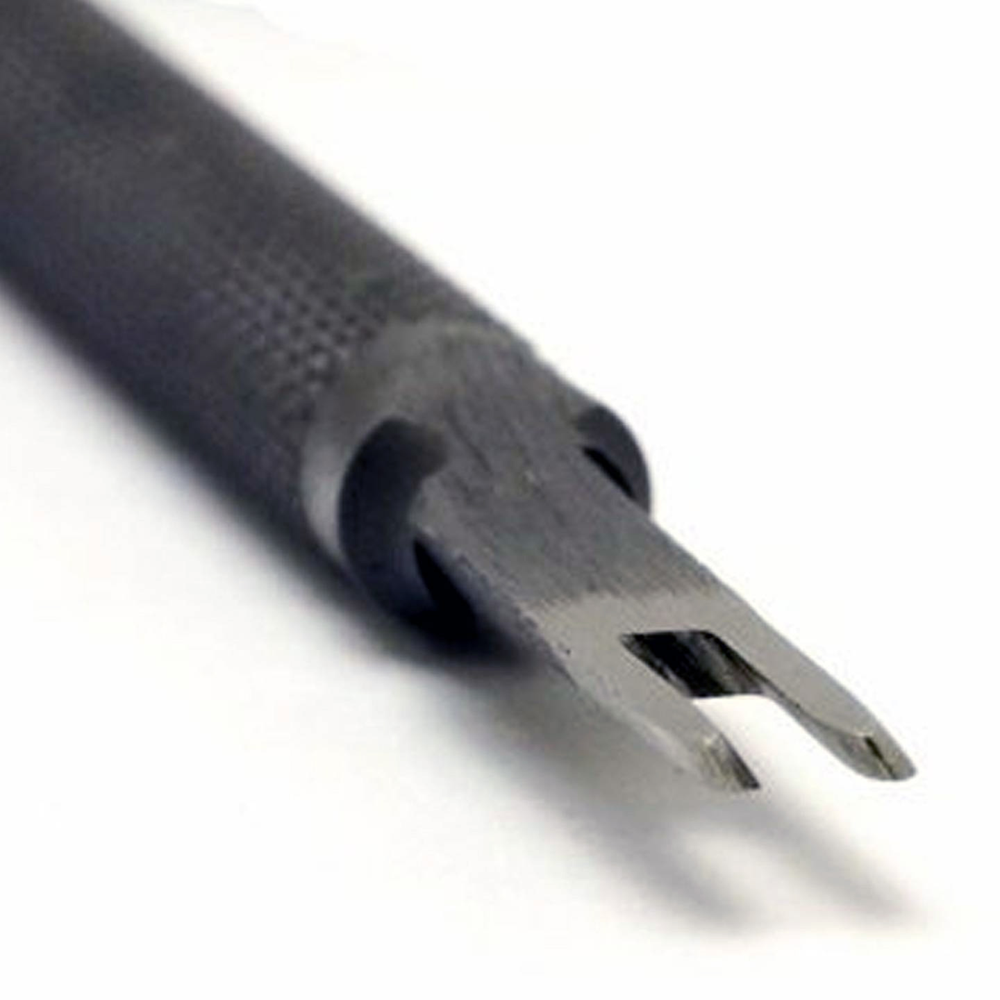 Because the prongs of this tool are highly tempered, making them hard yet brittle, they will break off rather than bend when overworked. This is due to the design, which prevents it from causing uneven thread holes in your leatherwork. The tempered prongs have two benefits. First, rather than bending, they snap off to safeguard your leatherwork from uneven stitching, which is not the case with cheaper pricking irons that bend and ruin your leatherwork with uneven stitch holes. Second, it offers long-lasting tips that not only require less honing but also have more penetrating force. These qualities provide the user with piece of mind, knowing that it will not harm the leathercrafts they have worked so hard to create.