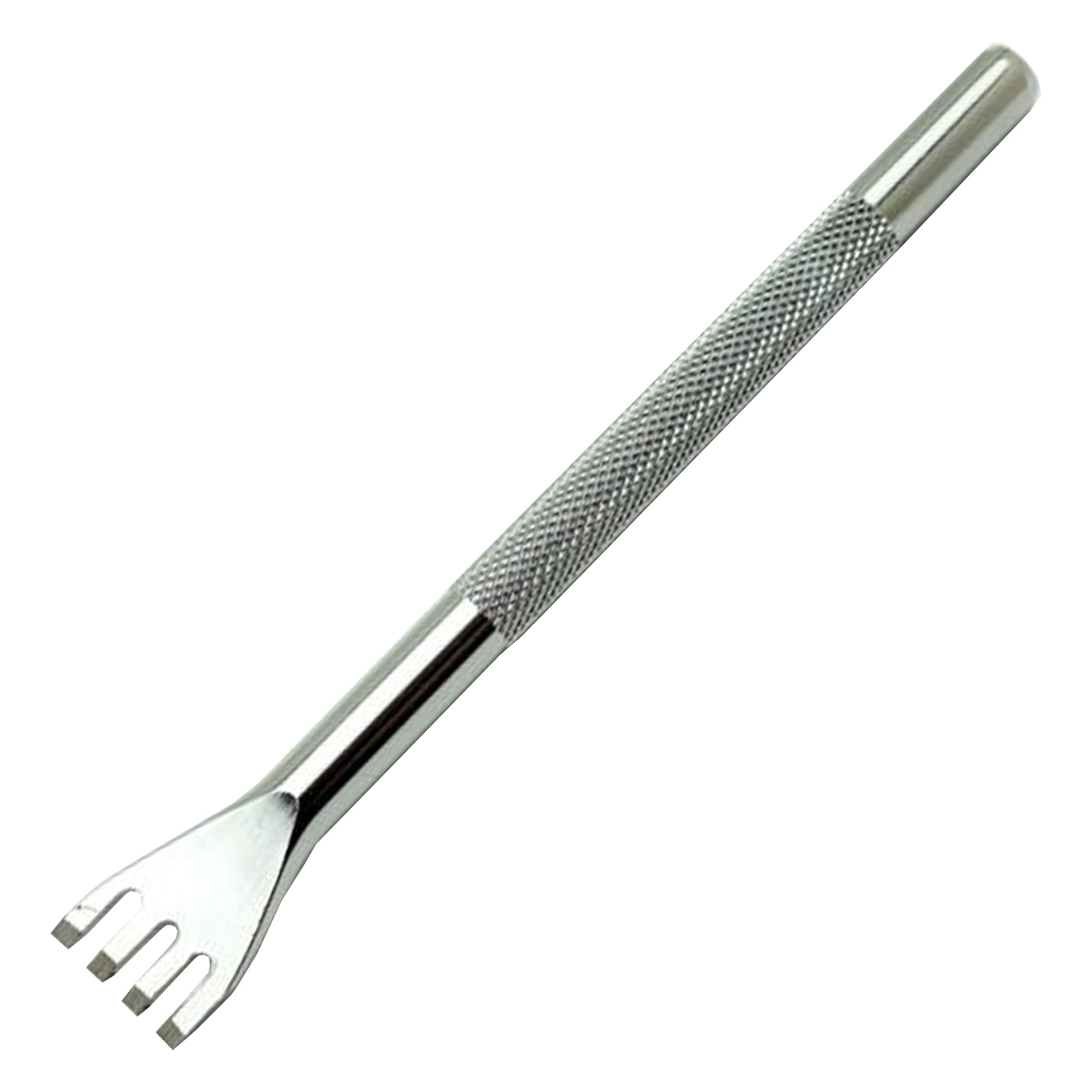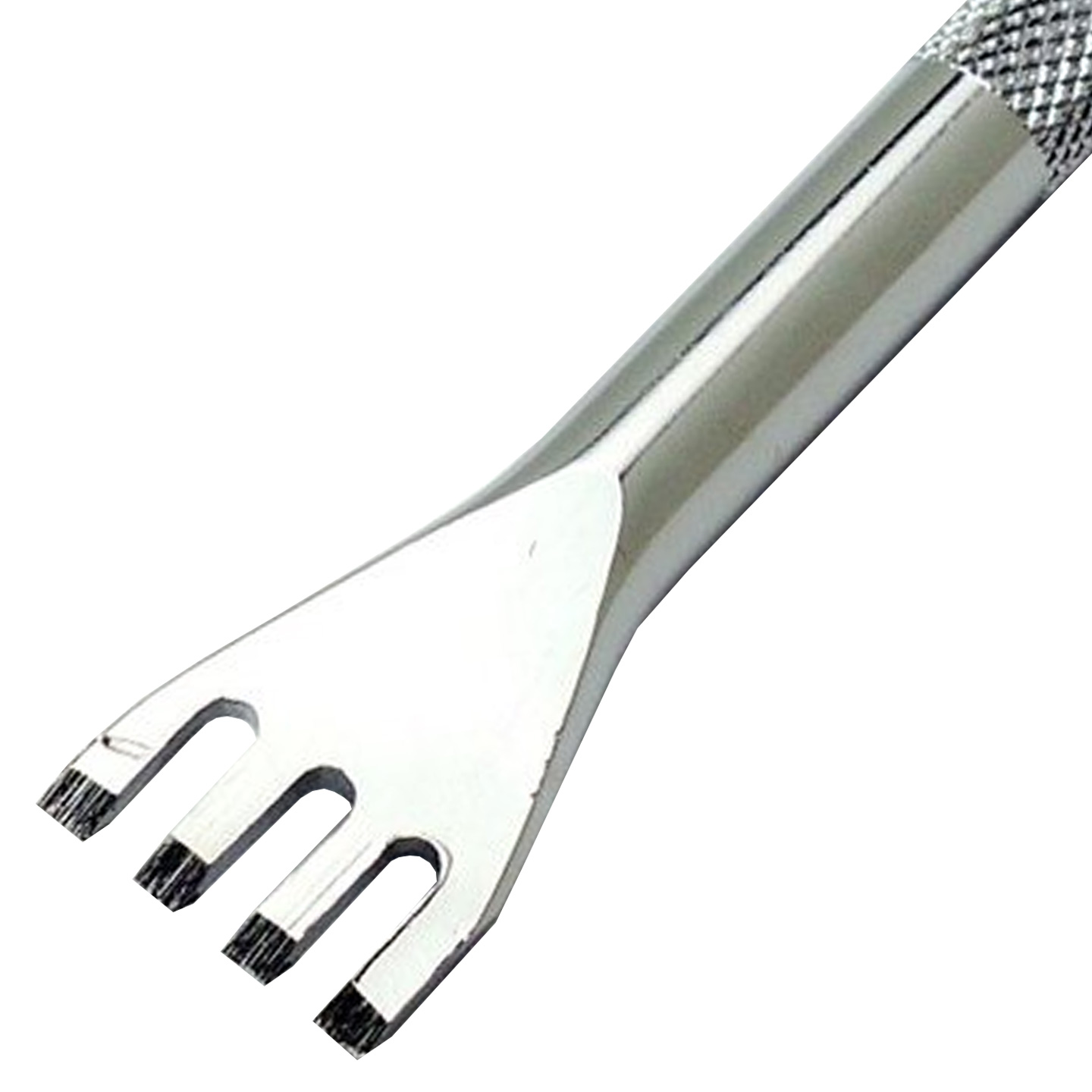 Because it can punch four holes at once, this thonging chisel is a more effective way to make slits, making it ideal for punching holes on the edges of your leather. Use this tool to punch holes, together with other thonging chisels in various prong numbers and sizes, depending on your demands (each sold separately).