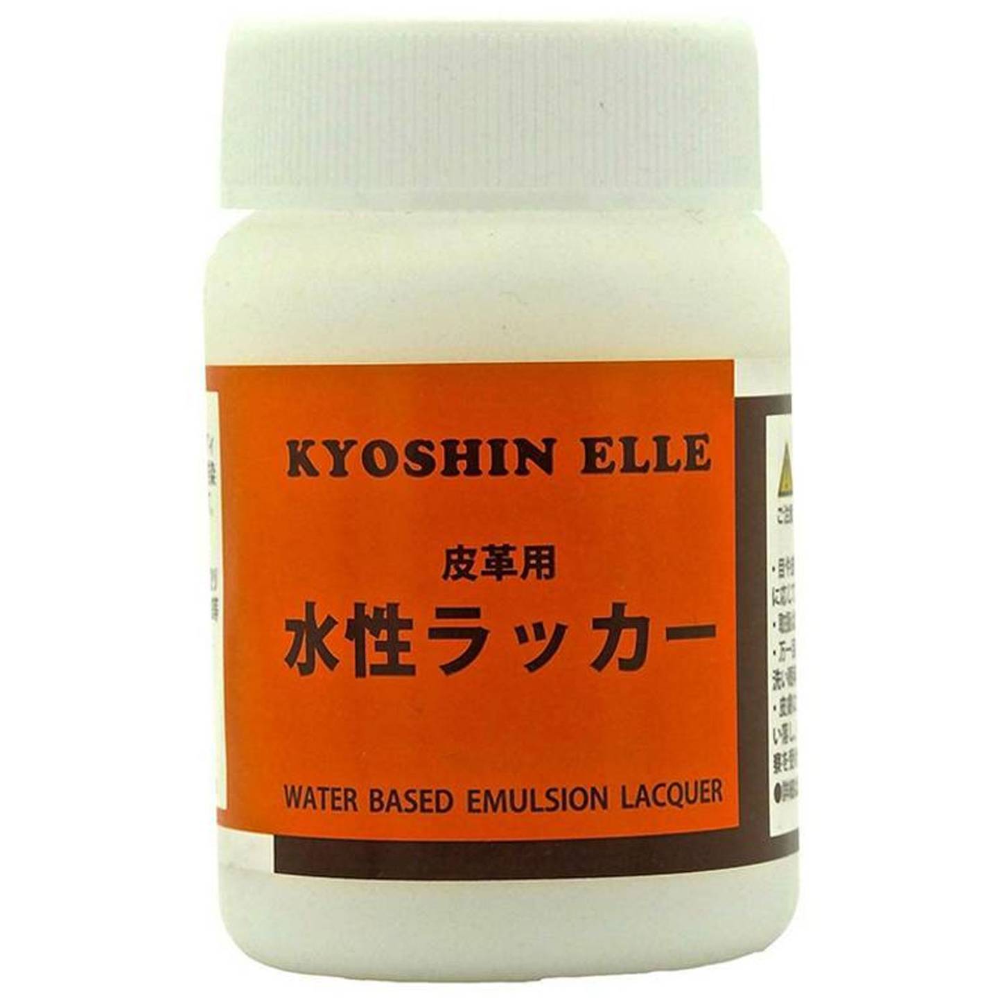 This Kyoshin Elle 100ml Water Based Emulsion Lacquer Leathercraft Sealer Finish is a water-based matte topcoat that protects and seals dyed or painted leather. Formulated to preserve surface texture while adding water resistance and rub protection, it dries clear and matte, leaving leather soft and flexible. The compact size is ideal for light users, repairs, and small projects.