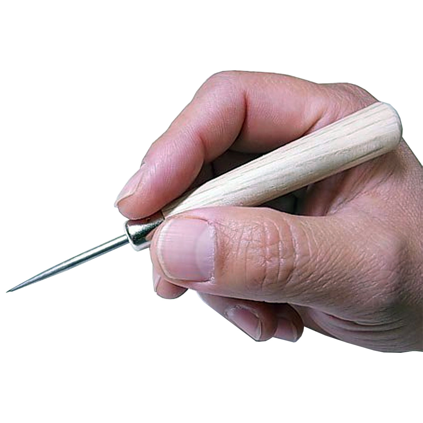The point is tapered allowing you to make the holes ranging in size from a pin prick to a hole wide enough to accommodate the widest of threads.
