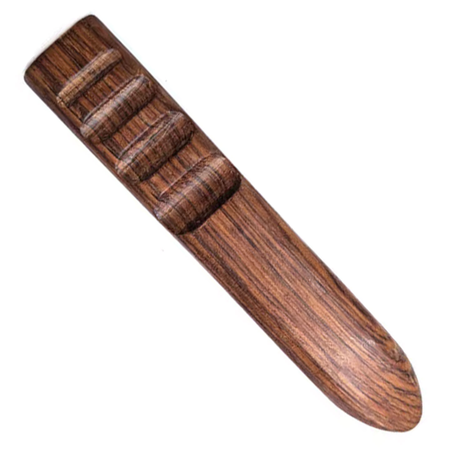 Burnish and slick the edges and flesh side of your leathercraft using this rosewood flat leather slicker with multiple-sized grooves. This tool is made of sturdy wood with a smooth finish, making it comfortable to hold and providing better grip and control when in use. Finish the edges and flesh side of leather items such as wallets, cardholders, belts, straps, and more with this affordable tool.