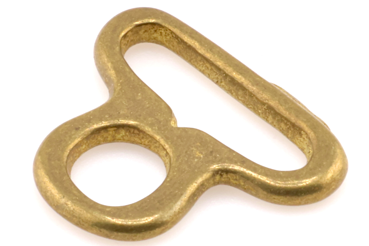 Excellent for securely linking your hardware and straps. This tough piece of hardware is excellent for linking hardware (such as eyelets, rings and links) to straps. Made of 3.5mm solid brass, this tough piece of hardware will not bend or give way even under heavy day-to-day use. The strap loop is 24mm wide and 5mm tall, whereas the loop is 8mm wide at its narrowest point.