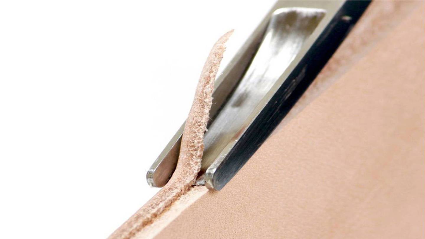 To use this Craft Sha FLINT Leathercraft Tool French Edger 6mm or 15/64" Leather Skiver Beveler, simply hold your leather firmly, flesh side up, position your French Edger at the desired angle at the corner closest to you, and push the blade away from you firmly to cut the edge of your leather using a steady hand. Should you wish to ensure accuracy, scribe a guide line on the flesh side of the leather for the higher side of the blade to follow while cutting.