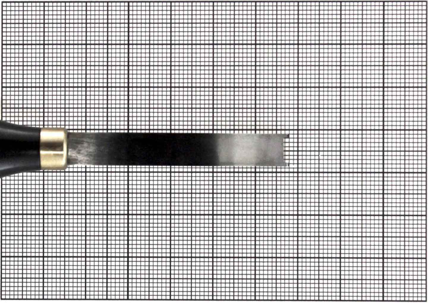 To sharpen this tool, simply run the blade over an oiled, fine grit whet or oil stone (1000 grit or higher) in a forward and backward motion, non-bevelled side down, until the desired sharpness is attained. After which the blade should be stropped over a leather strop treated with jewellers rouge for best results. Ensure the cutting edge of the blade is not struck or stored in contact with hard objects. Keep out of the reach of children.