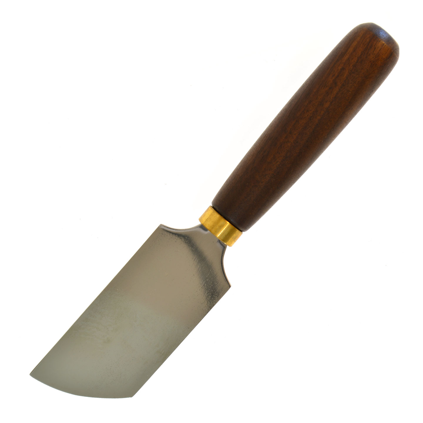 Use this skiving knife with an angled, round cutting edge to reduce the thickness of your leather quickly and smoothly. This tool is fashioned from D2 Steel with an ergonomic handle made from walnut wood, providing comfort and better control during use. Great for general leather cutting purposes also. A great value for your money.