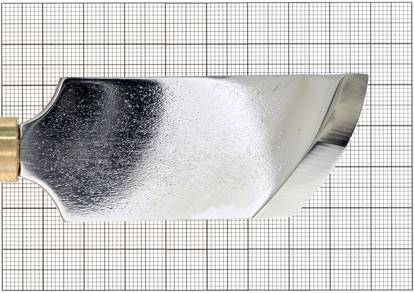 This skiving knife with an angled, rounded cutting edge is useful for quickly and smoothly reducing the thickness of your leather.