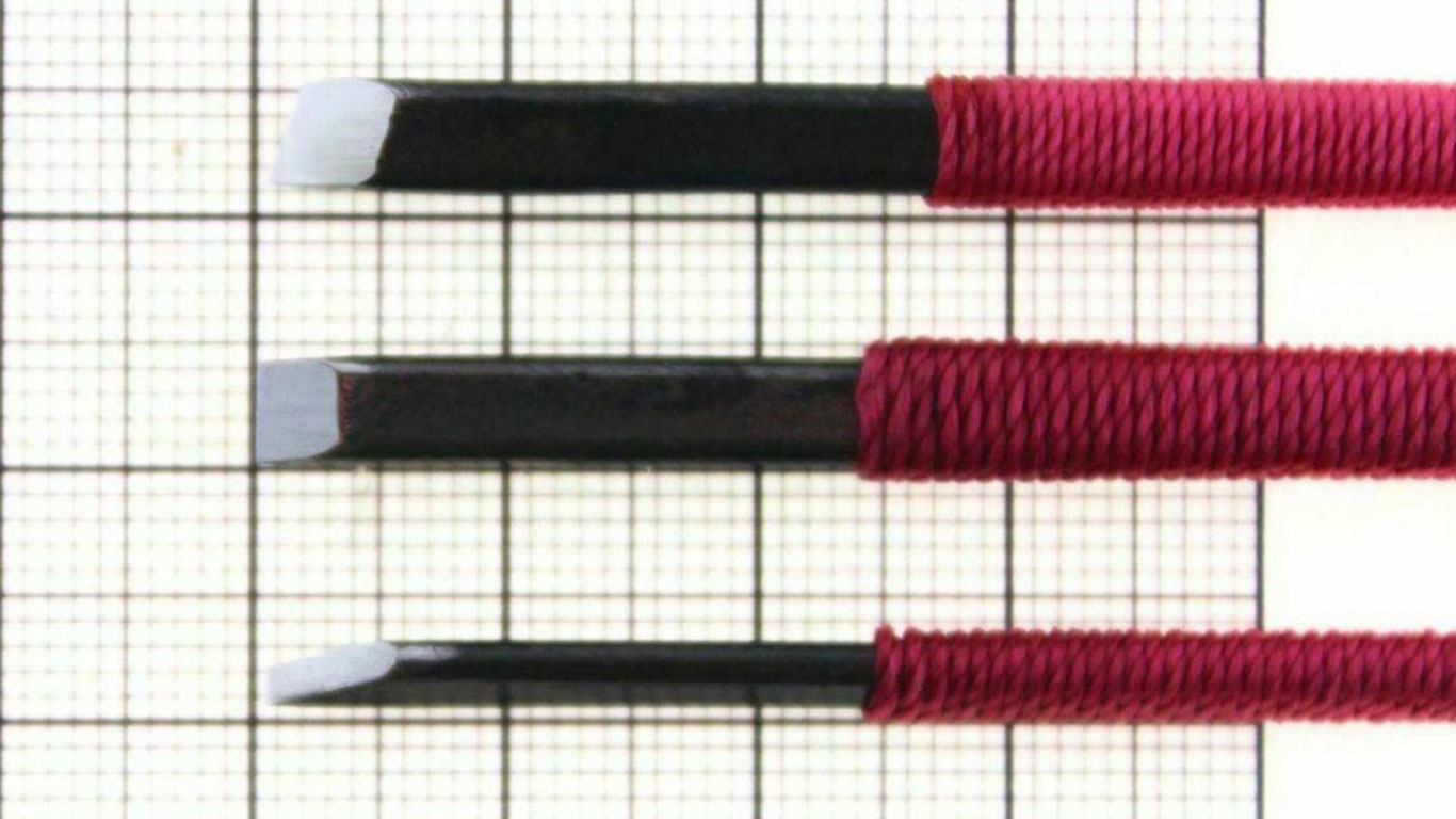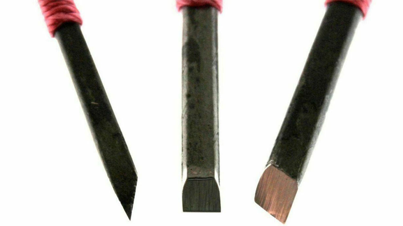 These affordable stone carving chisels are made from high quality steel, and are designed to engrave a Japanese personal seal (known as a Hanko or Inkan), but are great for other stone carving uses or other applications, such as wood carving or sculpting dried Precious Metal Clay (PMC). Quality made in Japan.