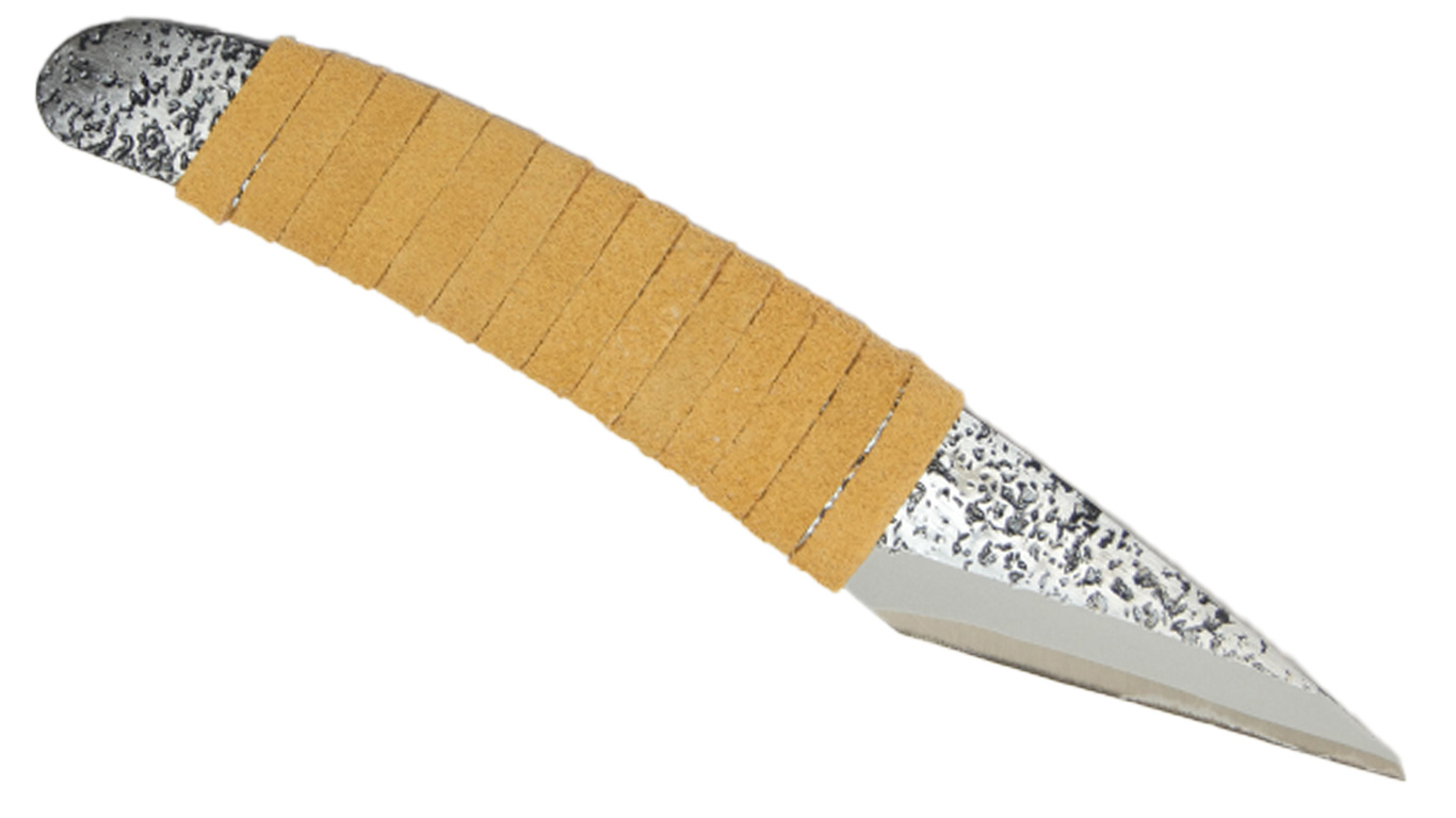 The leather wrap makes it easy to grip. It is convenient for roughing out at the beginning of wood carving with its knife-like build. It is also great for grafting and chip carving.