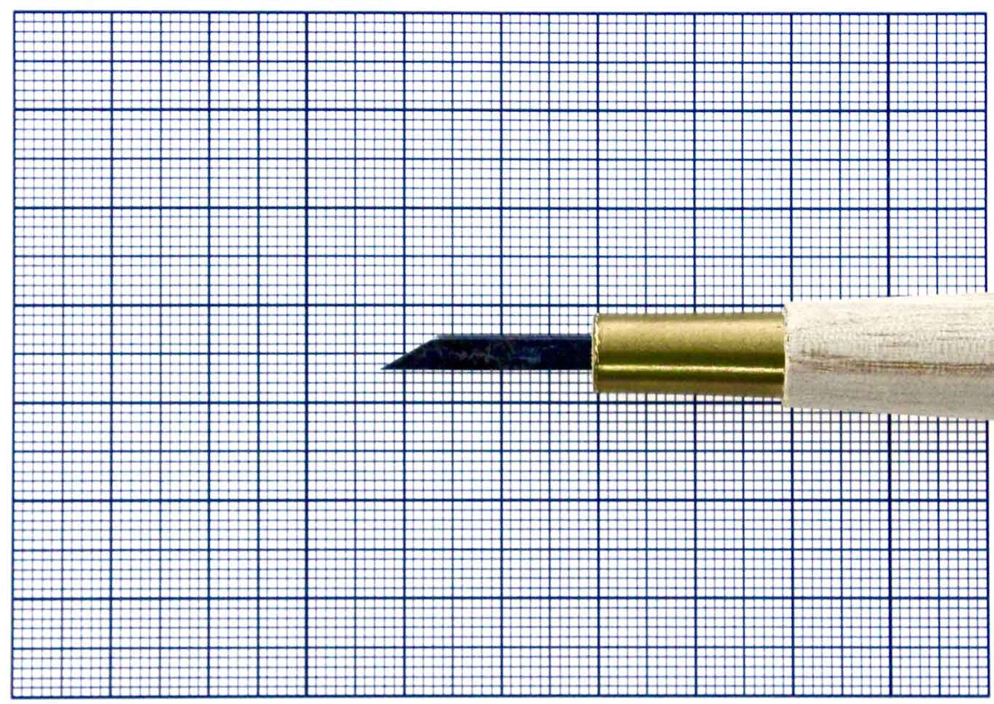 Made for the Japanese traditional stone stamps known as hanko, this professional tool is excellent for fine-tuning and finishing work. The blade is made from high quality steel, meaning that it is durable and will last for a long time. This blade's size is great for cutting corners into stone or creating intricate patterns.