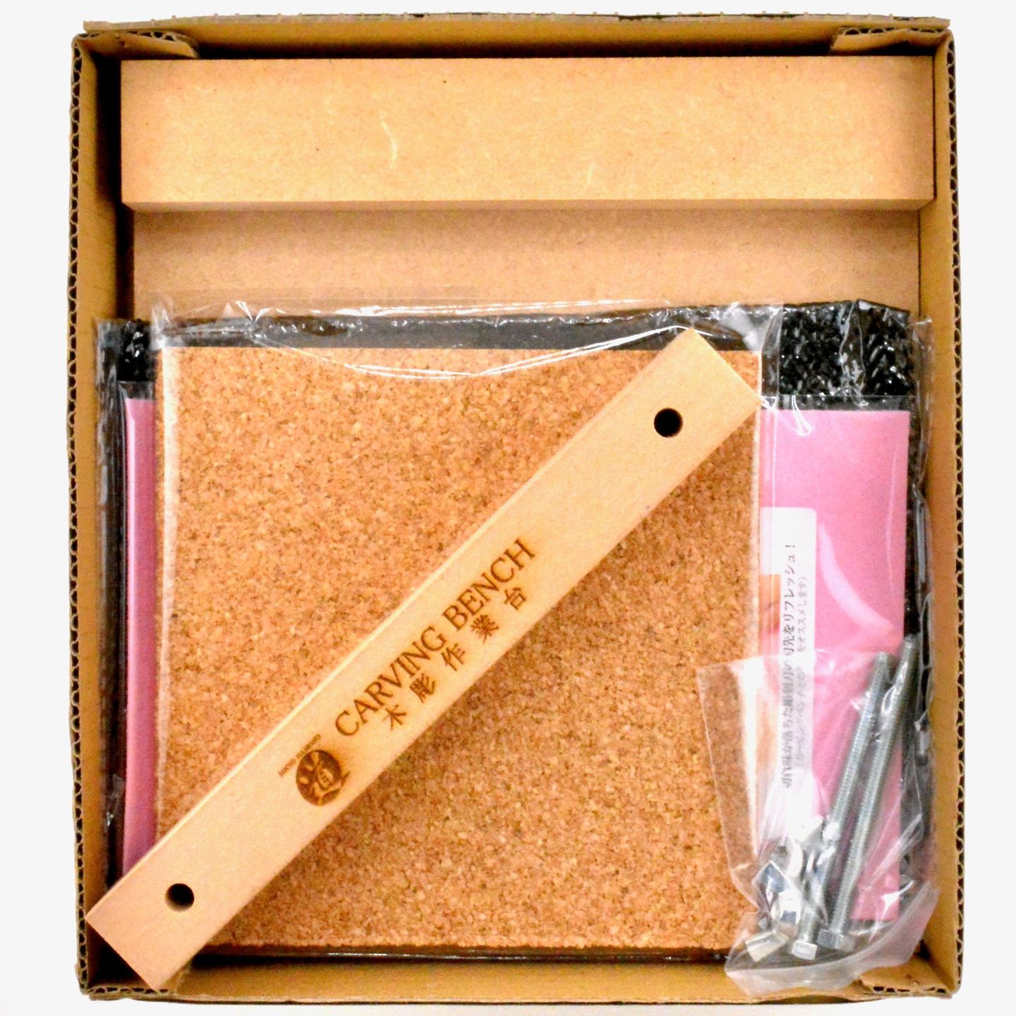 This set comes with a non-slip mat that is placed underneath the carving bench, to keep it from sliding off your table when in use. This set also includes a cork board that can be used to protect the cutting edge of your carving tools from damage. This carving bench is great for making wooden cutlery, wood print blocks, as well as figurines and sculptures.