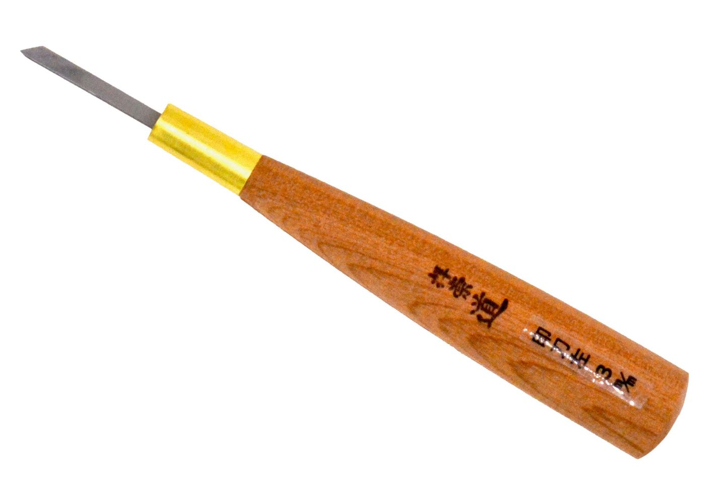 Michihamono Skew Chisel 3mm Wood Carving Tool, Woodworking Knife to Carve Woodblocks and Corners of Wooden Figurines or Reliefs