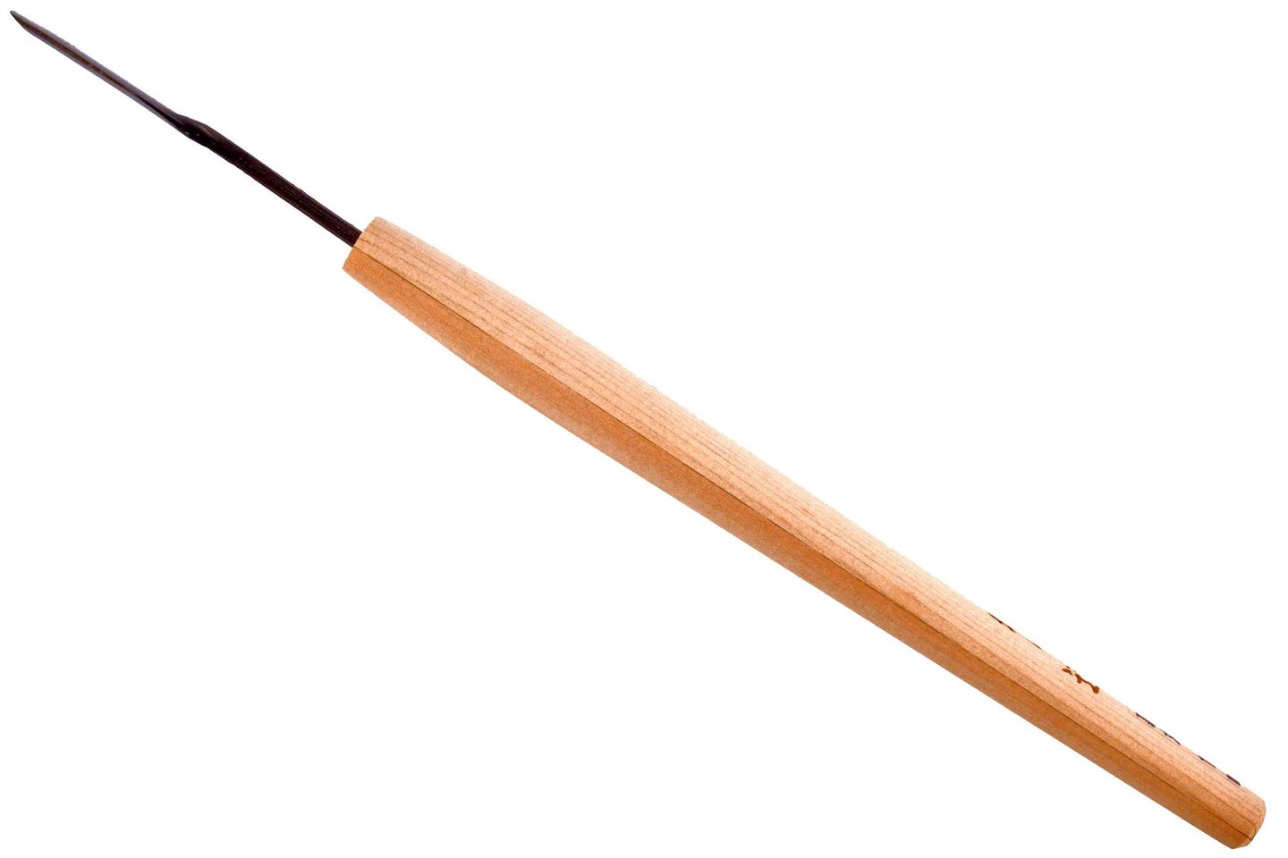 This Japanese-made tool features a sharp, high-speed steel (HSS) 18mm blade ideal for wood carving. Its shallow U-gouge design allows for comfortable manoeuvring and clean cuts, making it perfect for both beginners and experienced woodcarvers.