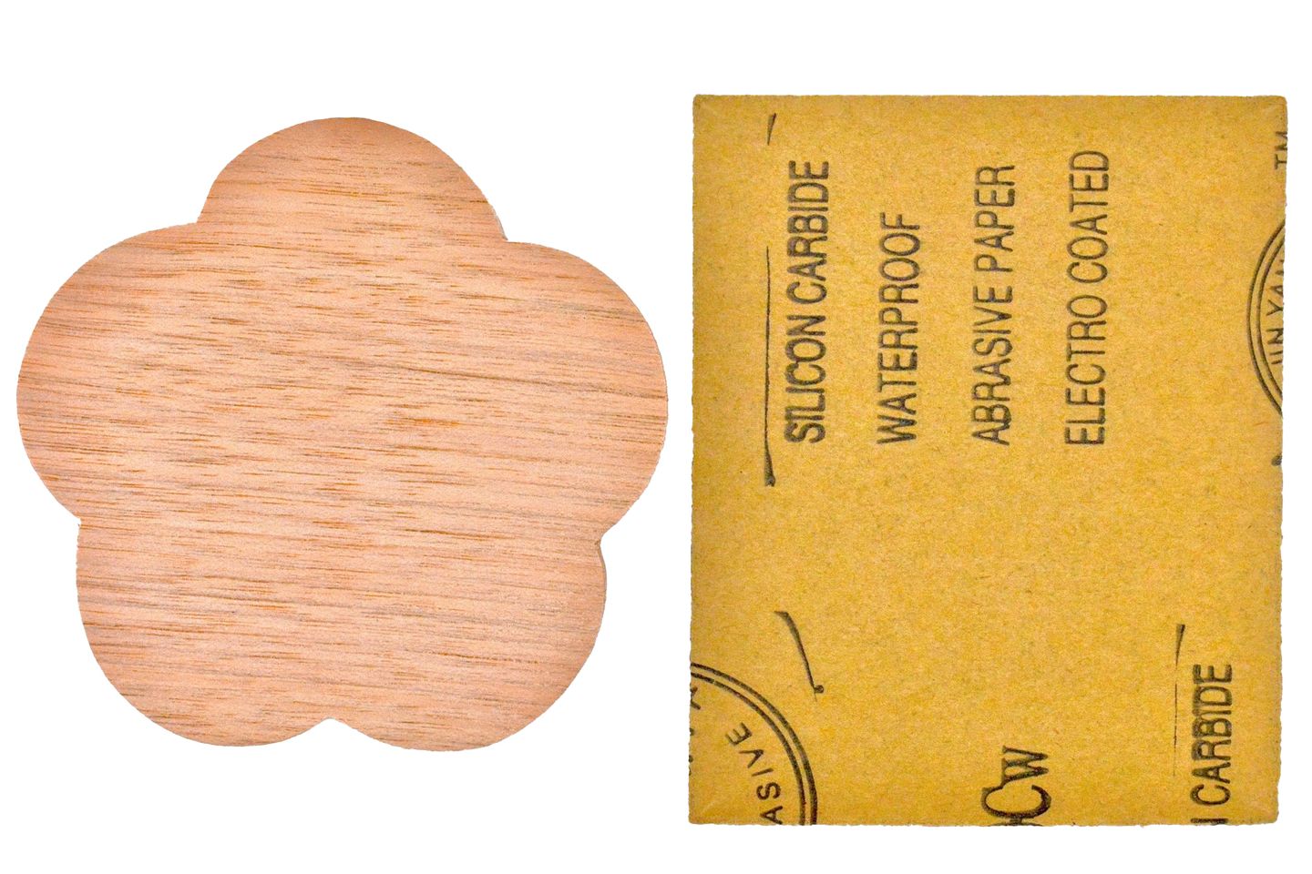 Original walnut flower-shaped lumber from Michihamono, ideal for carving coasters, trays, or reliefs. Includes #240 sandpaper and Japanese instructions.