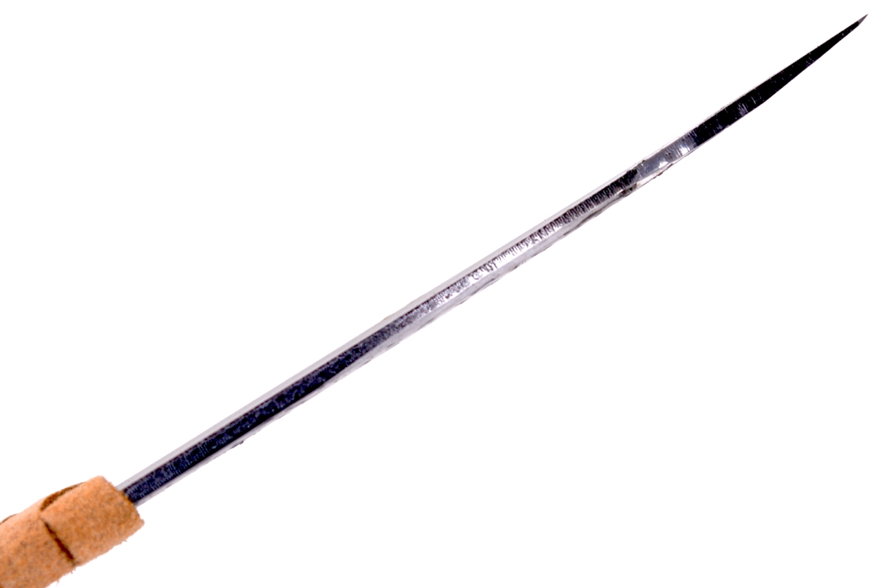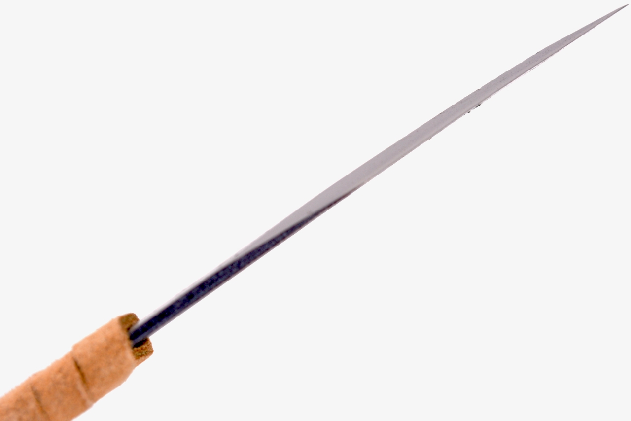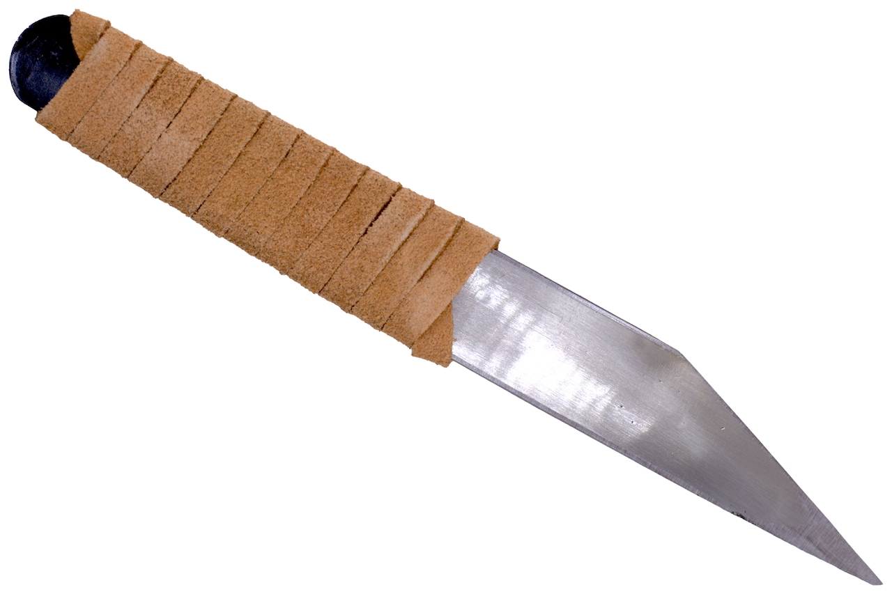 Carve wood with this handy wood carving knife from Michihamono, a renowned Japanese manufacturer of carving tools. This tool is forged from high-quality steel from the blade tip to the handle and comes sharp and ready to use right out of the package. This tool's handle is wrapped in leather, making it easy to grip and providing better control and comfort when using.