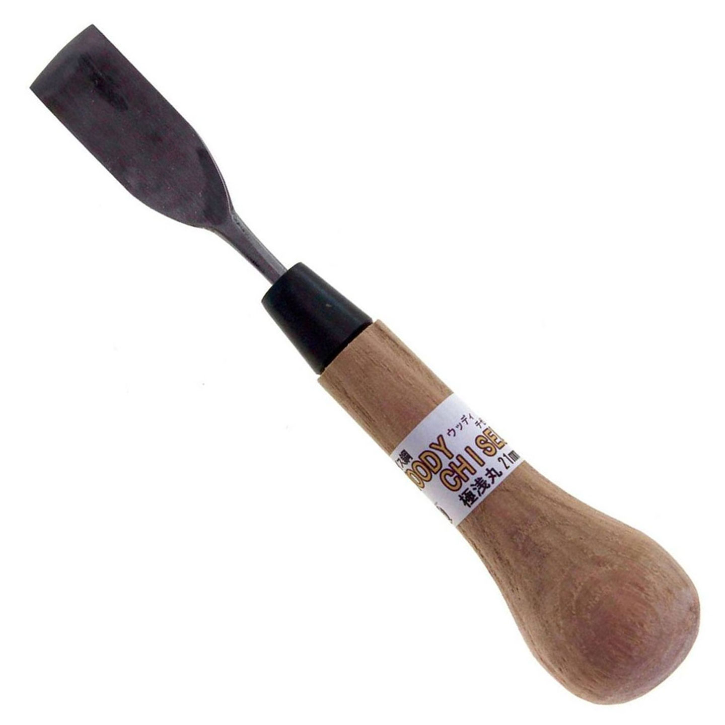It has an extremely shallow cutting edge with a 21mm wide blade which is convenient for finishing flat surfaces such as in levelling the backgrounds of a relief carving. This tool can be used easily with one hand and it can also withstand repeated blows when used with a hammer.