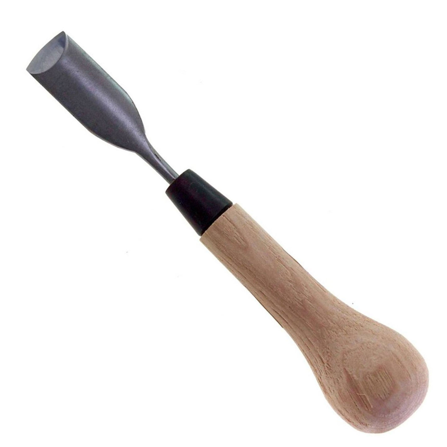 This handy wood carving tool is handmade in Japan by Michihamono. Forged from high-speed steel, a material also used in making high-quality power saw blades and drill bits, that exhibits a high level of strength and hardness and is strong against hardwood. It has a short, gourd-shaped handle made from walnut wood that fits well in your palm and easy to be applied with force. A ferrule can be found at the end of the handle to keep it from splitting and holding the shank in place.