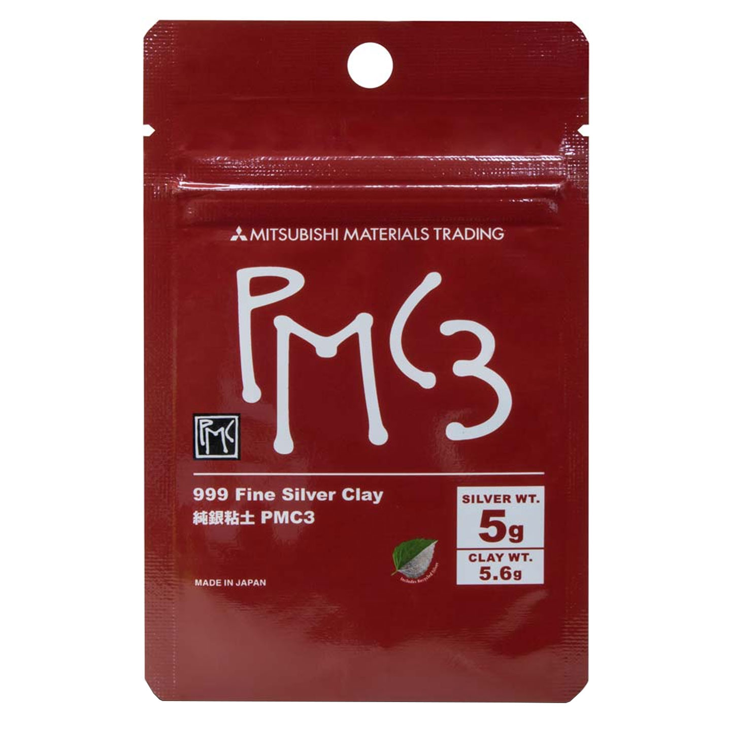 Mitsubishi Materials Japanese Precious Metal Modeling Clay Pack Wt 5.6g PMC3 999 Fine Silver Wt 5g, for Jewelry Making
