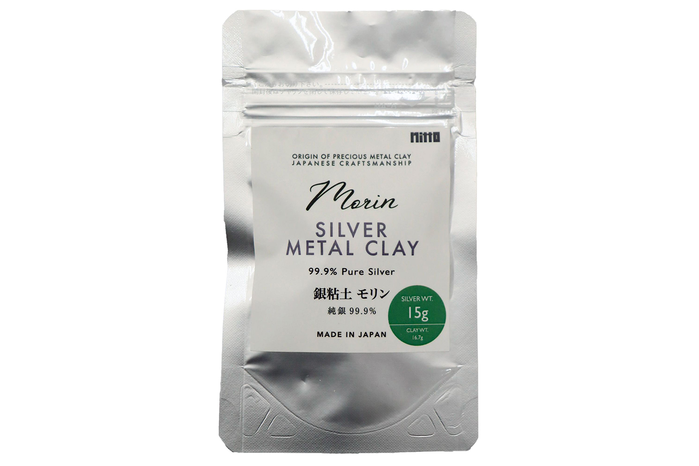 Nitto Gakku Morin Silver Metal Clay, 99.9% Pure Silver Weight 15g, Clay Weight 16.7g, Precious Metal Clay for Making Fine Silver Jewelry, Made in Japan