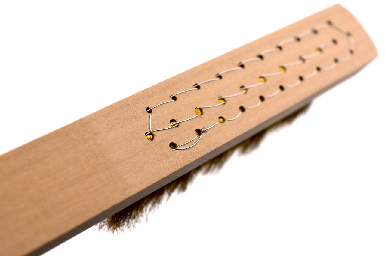 Polish your PMC silver clay jewellery after firing with this quality brass wire brush. This brass brush is softer than stainless steel and comes in handy for cleaning, polishing, and texturing without leaving scratches on your fine silver clay creations. This tool has multiple rows of soft brass bristles securely attached to the sturdy wooden handle.