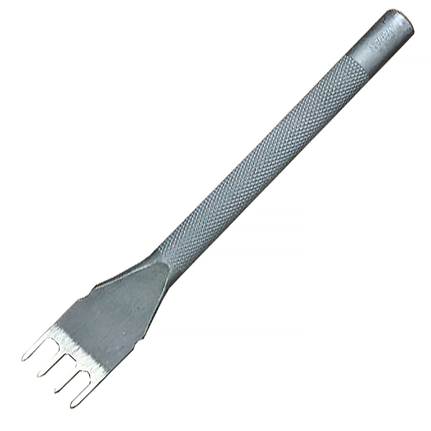 This four-prong stitching chisel punches multiple holes simultaneously, making it ideal to use along straight lines like the edges of the leather. Simply set the stitching chisel over the leather you want to add stitch holes to, then pound it with a soft-headed hammer until a hole is created.