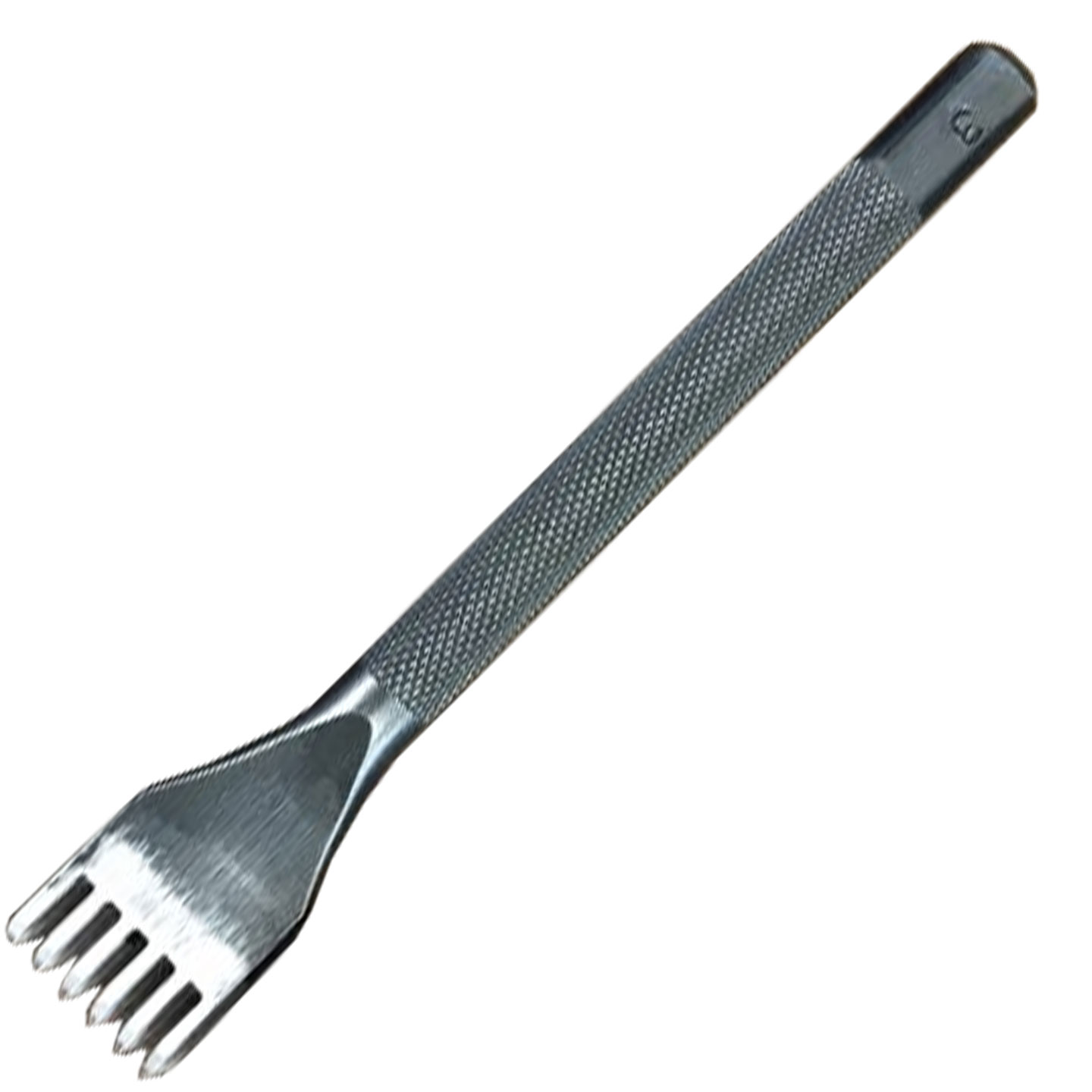 Quickly and easily punch multiple stitching holes in a straight line, such as on the leather's edges, with this six-prong diamond hole punch.