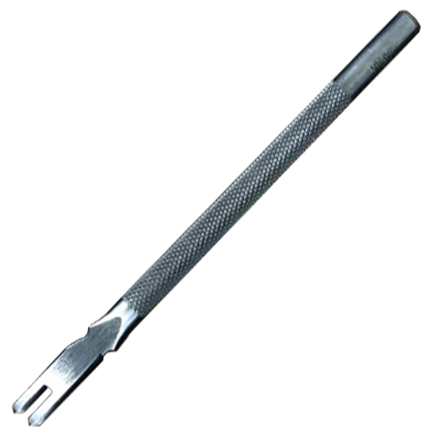 When overstressed, the prongs of this tool will break off rather than bend because they are heavily tempered, making them hard yet somewhat brittle. This is due to its design, which prevents the stitch holes in your leatherwork from being uneven. Tempered prongs provide two advantages: Firstly, the prongs snap off rather than bend, protecting your leatherwork from uneven stitching, which is not the case with cheaper pricking irons, where an undetected bent prong can ruin your leatherwork with uneven stitch holes. Second, it provides long-lasting tips that require less honing and have more penetrating power. These characteristics provide the user peace of mind, knowing that the leathercrafts they have worked so hard to make will not be damaged.