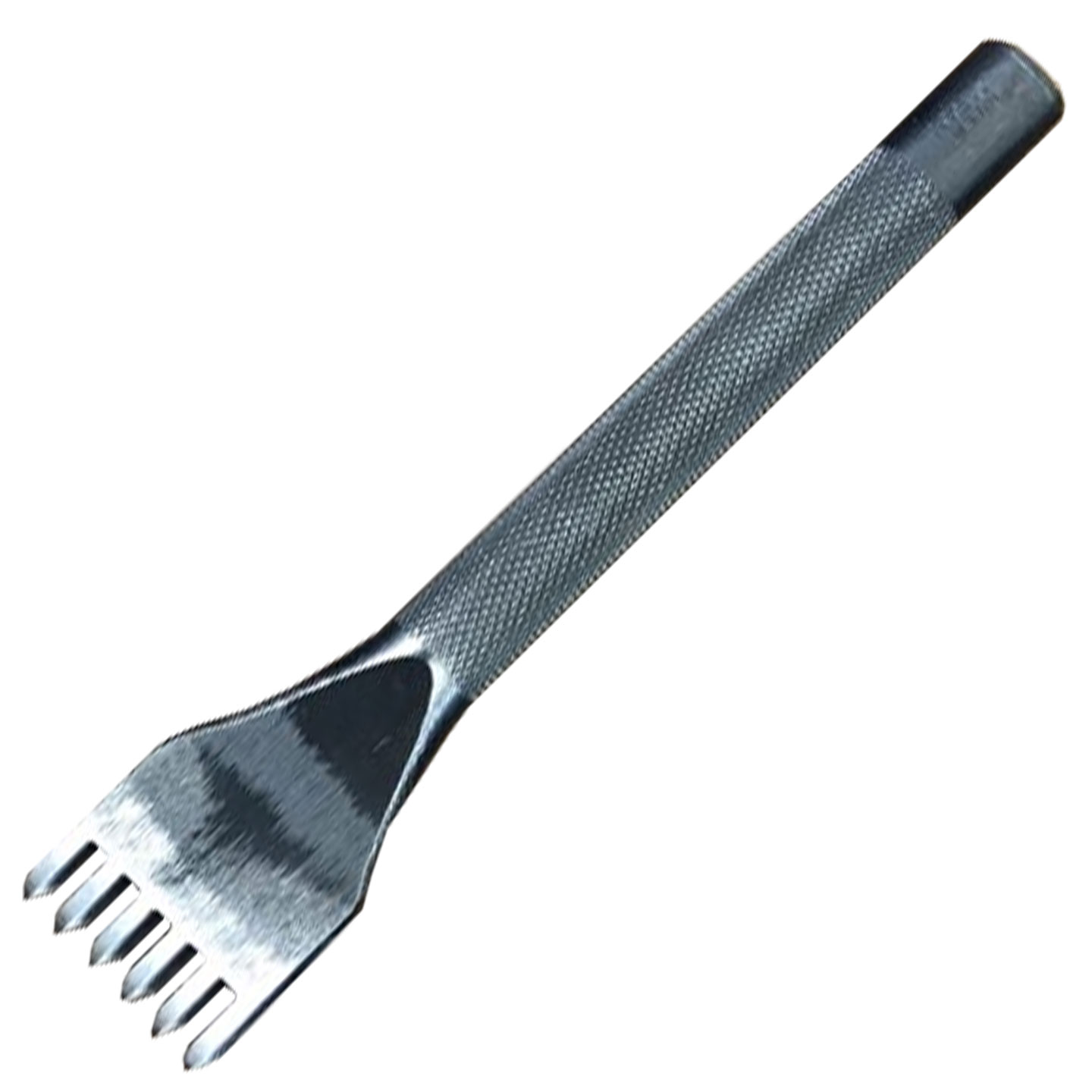 This six-prong diamond hole punch can be used to punch multiple stitching holes quickly and easily in a straight line such as on the edges of your leather.