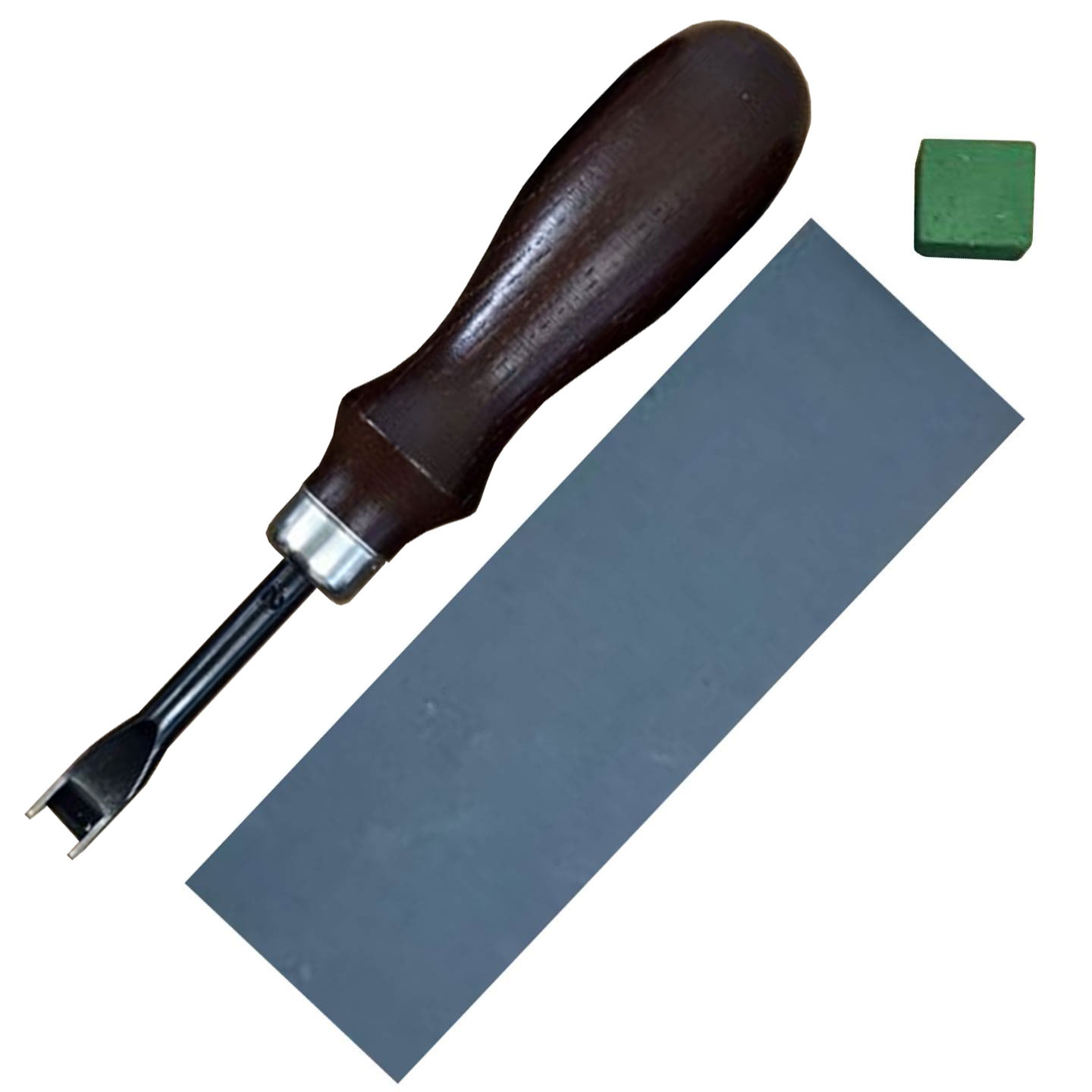 This French edger is ideal for creating smooth, flat bevels around the edge of the leather. It also functions as a skiver for reducing the thickness of the edges or ends of your leather.