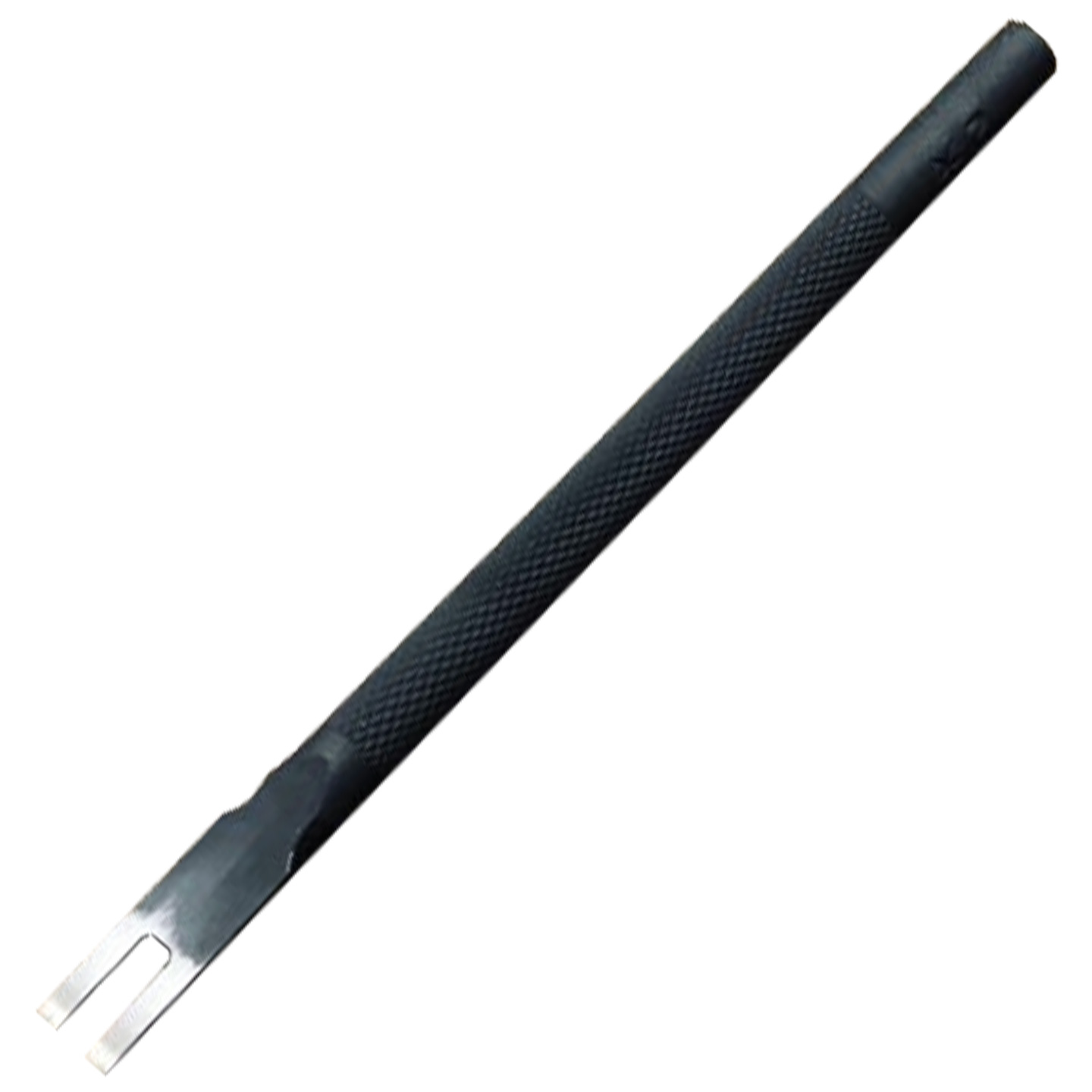 Oka of Japan's sharp leather lacing & stitching chisel is made of high-quality materials and is ready to use straight out of the box. The prong tips on this tool are evenly sized with 2.8mm spacing on each prong, providing precise and clean leather slits. This thonging chisel's handle has been knurled to improve performance and ease of usage. It's also tempered from the handle to the prongs to make it more durable, making it excellent for leathercraft.