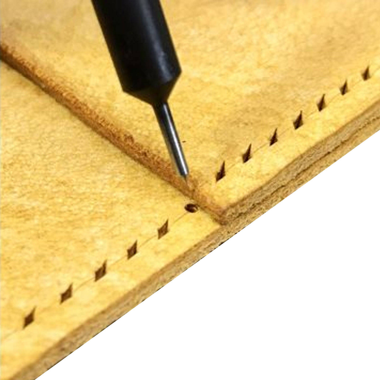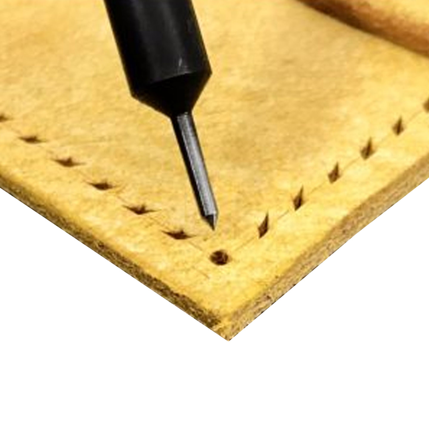 This simple but very important tool can be used to produce a single round-shaped stitch hole on the corner of your leather, useful for unifying stitches in a clean and pleasant looking way. This tool is ideal for creating corner stitch holes or precisely putting a stitch hole in just the right location.