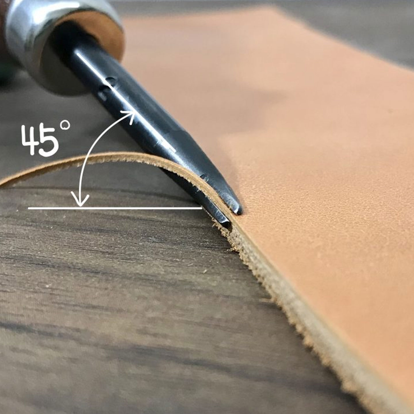 This Pro Edger from Oka features a 0.8mm wide blade that is ideal for bevelling the square corners on the edges of your leather.