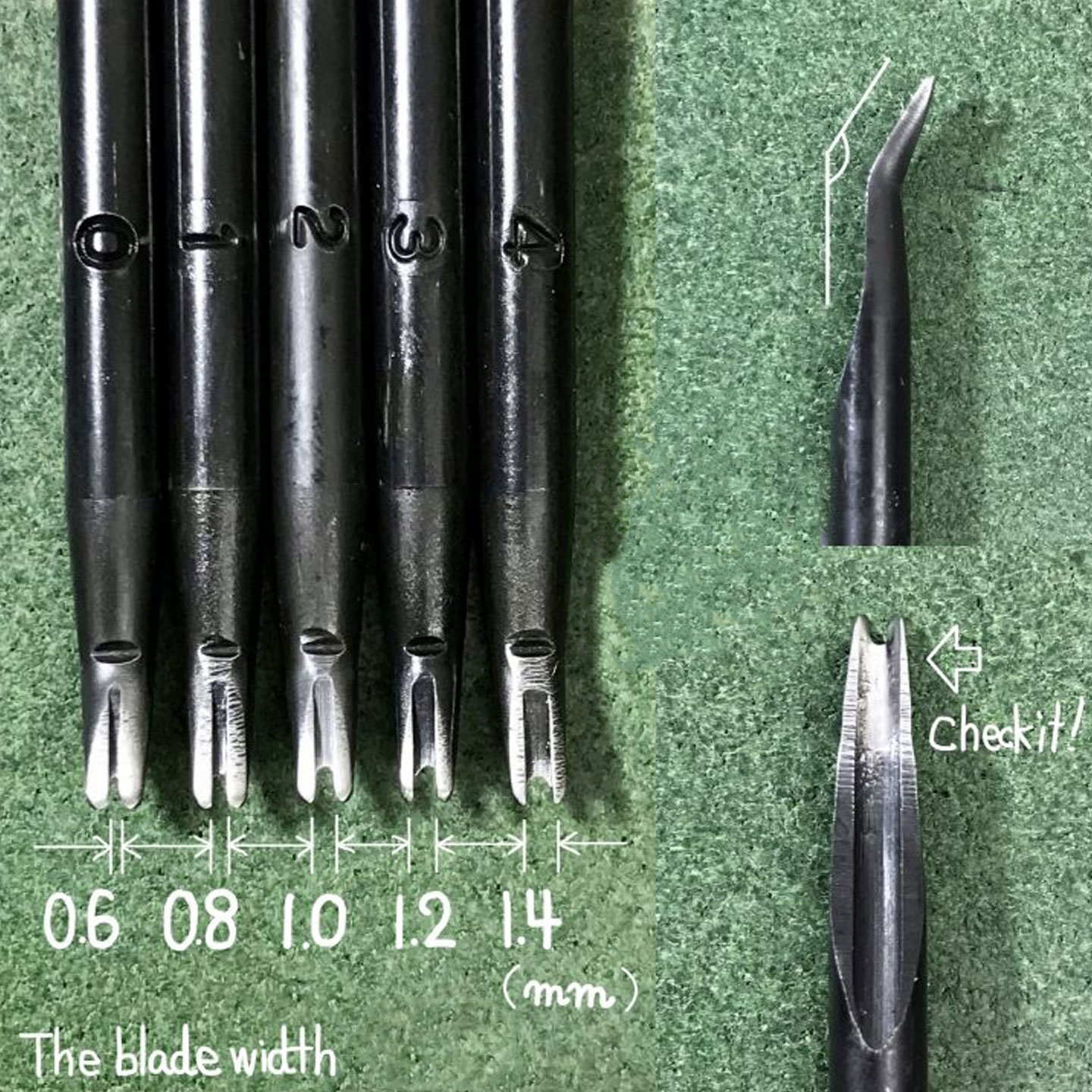 Use this tool to trim the sharp corners on the edges of your leather, giving it a smooth, rounded finish. The size number can be found on the shank of the blade, making it easier to determine the right size for your work.