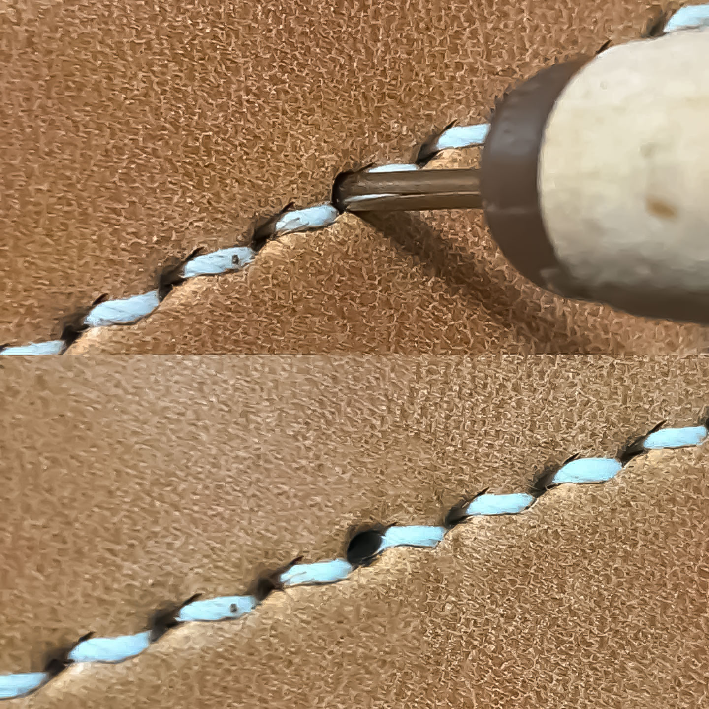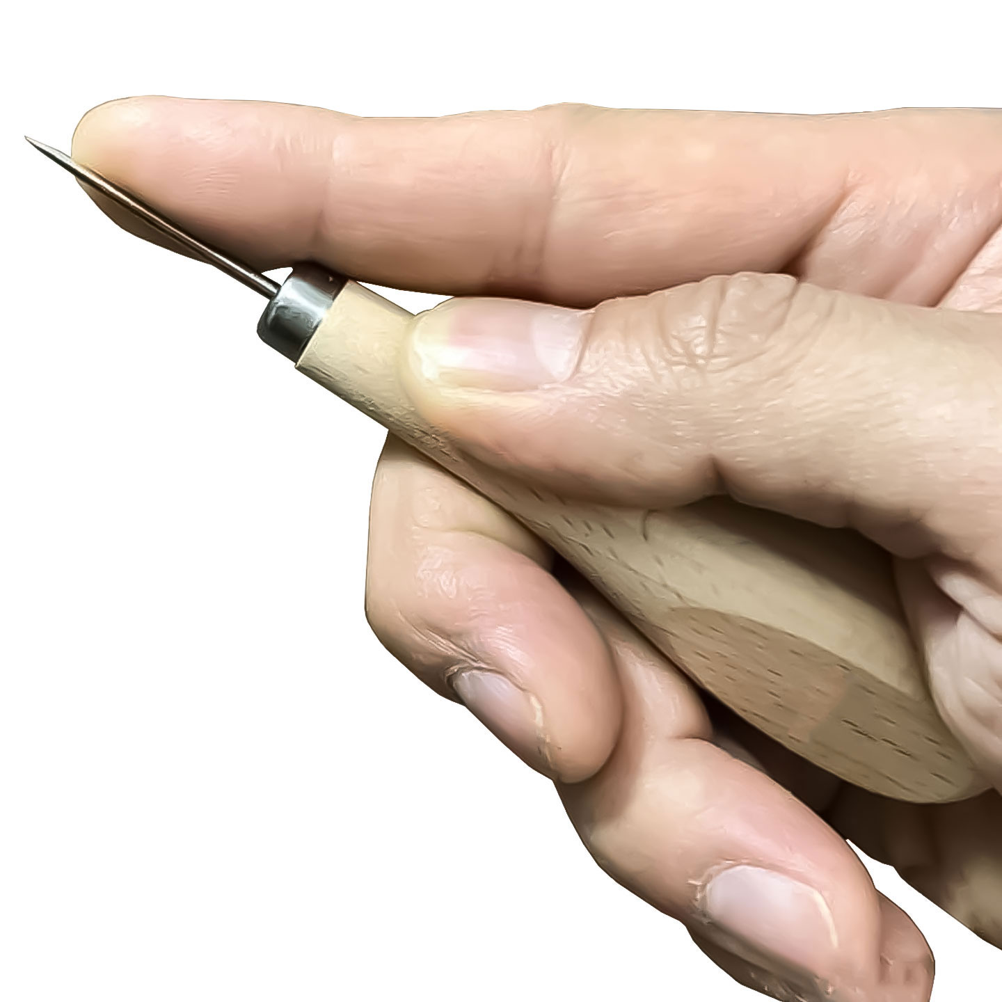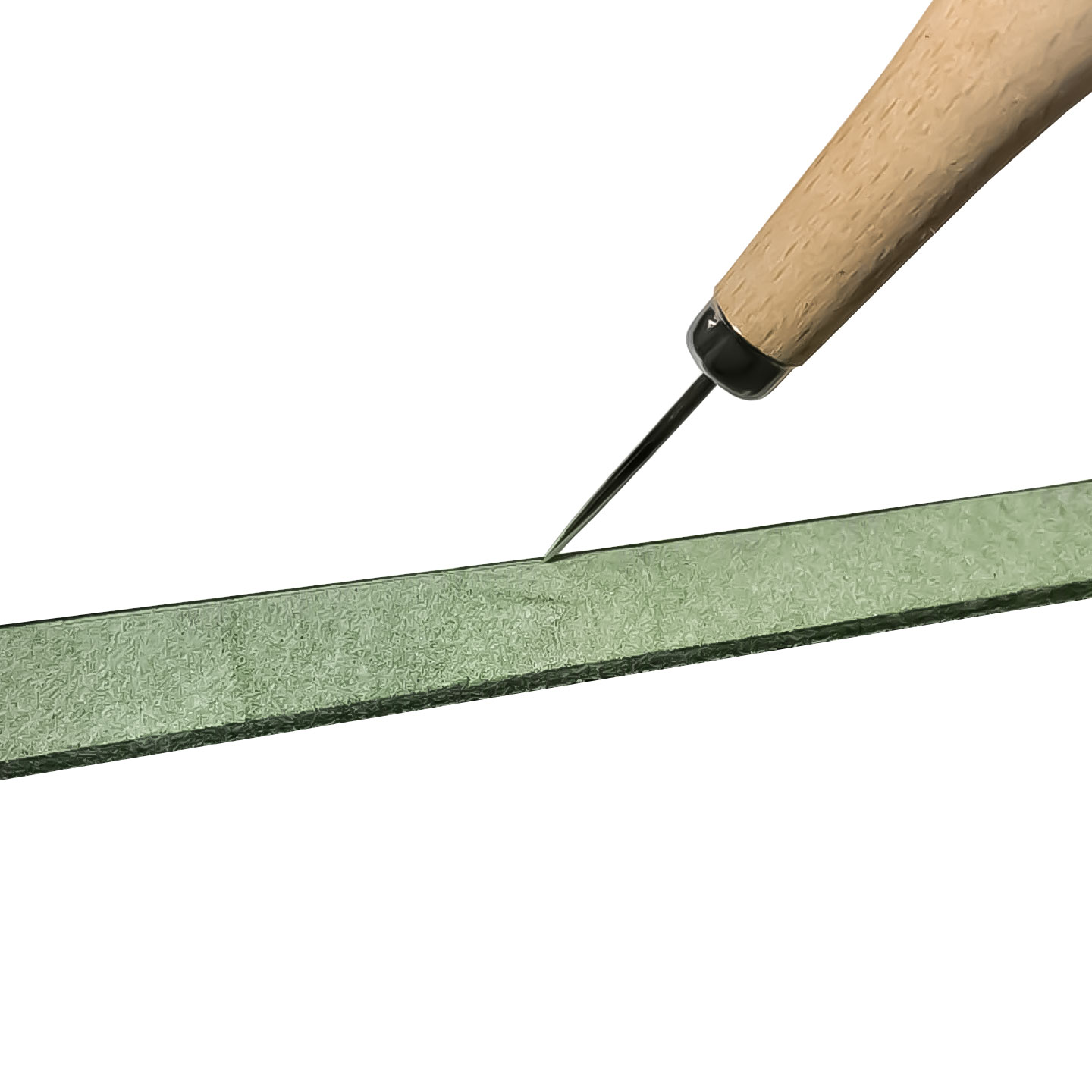 This Japanese made tool is a great addition to your leathercraft tool collection for punching corner holes in your stitching or as a scratch awl.